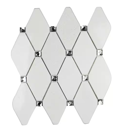 Mirage Lozenge Thassos 11.25 in. x 10.5 in. x 8 mm Marble and Glass Wall Mosaic Tile
