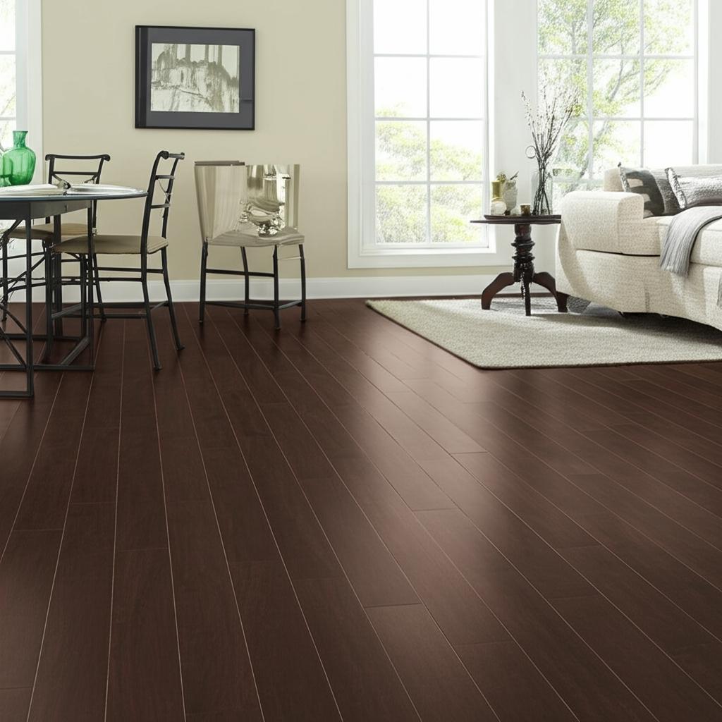 Transform your living space with the rich, espresso tones of this engineered bamboo flooring. Its smooth finish and medium gloss create a sophisticated ambiance, perfect for modern or transitional interiors. Pair it with sleek furniture and bold accents to highlight its timeless appeal. This flooring is not just a surface but a statement of refined taste and sustainable luxury.