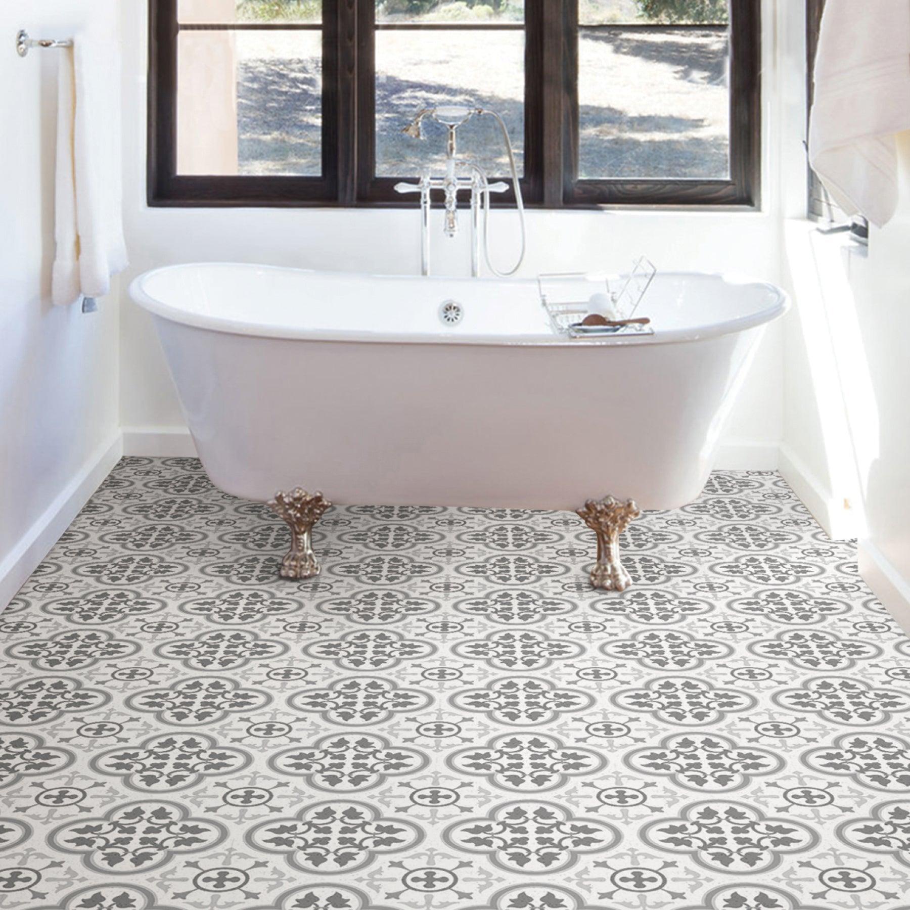 • Featuring a grey and white color palette and center gothic-motif, these peel and stick floor tiles will give kitchens, bathrooms, or even laundry room floors a refreshing new look with a farmhouse style