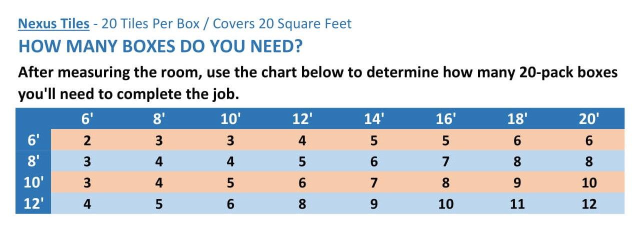 Do you want to give your room a brand new tile look and at a low cost without the mess Look no further than our assortment of Vinyl Peel and Stick Easy DIY Nexus Tiles! Our water resistant vinyl tiles can be used in any room in your home including the Kitchen, Dining Room, Bedrooms, Bathrooms, Foyers and Basements. No messy glue or adhesives needed, just peel and stick the Nexus tiles to a flat and dry surface. Get ready to show off your beautiful new room to all your family and friends! This is the perfect Do It Yourself project to transform any room in your home! Our chart provided above tells you how many boxes of carpet tiles you need to complete your project. Each tile is 1.2mm thick, giving a realistic tile finish and high quality texture. DISCLAIMER: Actual product color may vary from colors shown on your monitor or mobile screen.