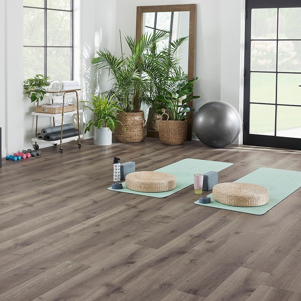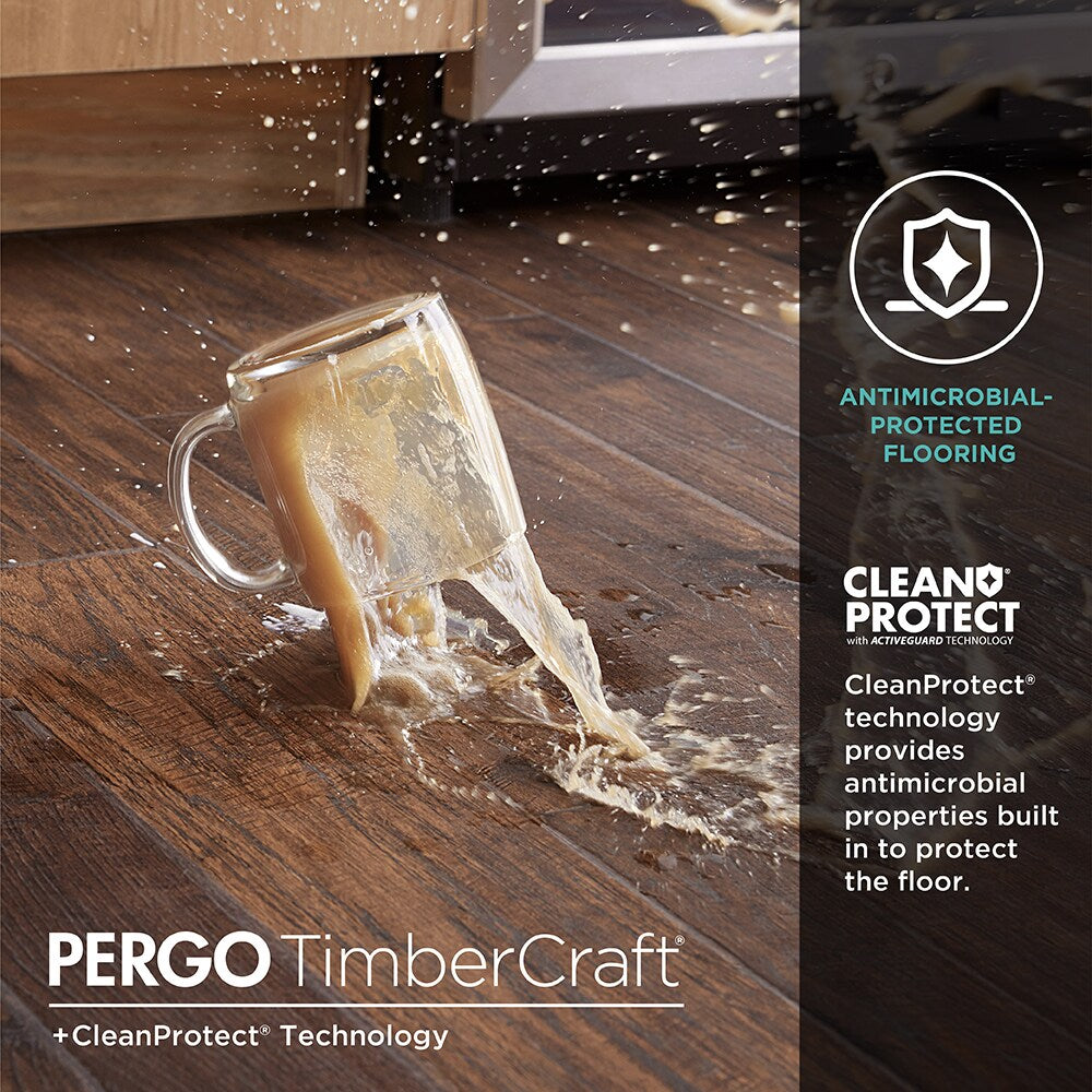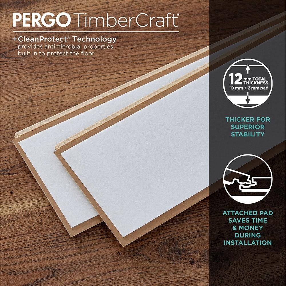 Elevate your space with Pergo's TimberCraft +WetProtect Ruxin Oak Laminate Flooring, crafted with ultimate waterproof protection and durability. Featuring attached underlayment for easy installation, this flooring blends rich grey tones with a wirebrushed texture for a truly authentic wood look.