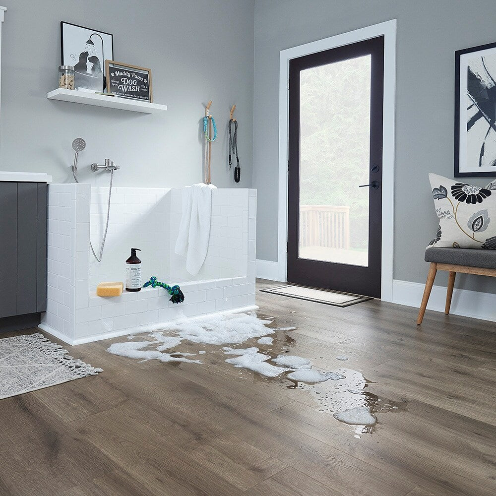 A: Yes, the WetProtect® technology provides a lifetime waterproof surface and subfloor guarantee, suitable for kitchens, baths, and laundry rooms.