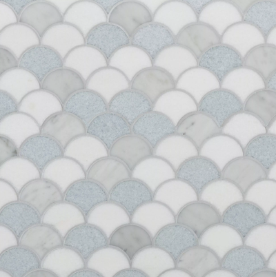 Thassos Calacatta Bianco Carrara Fan Honed Marble Mosaic