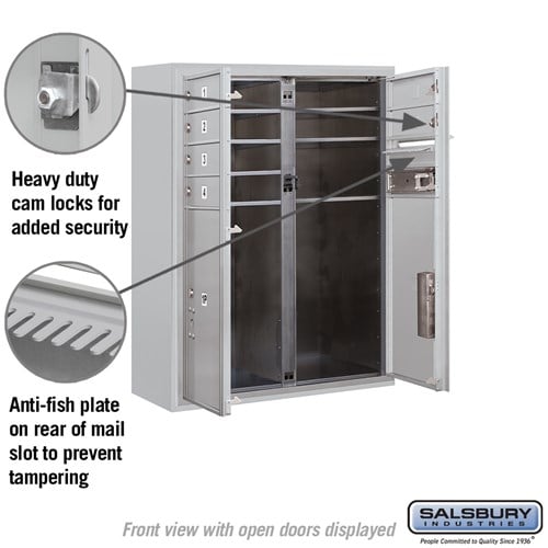 | Security Features | Heavy duty cam locks with dust/rain shield, anti-fish plate on mail slot |