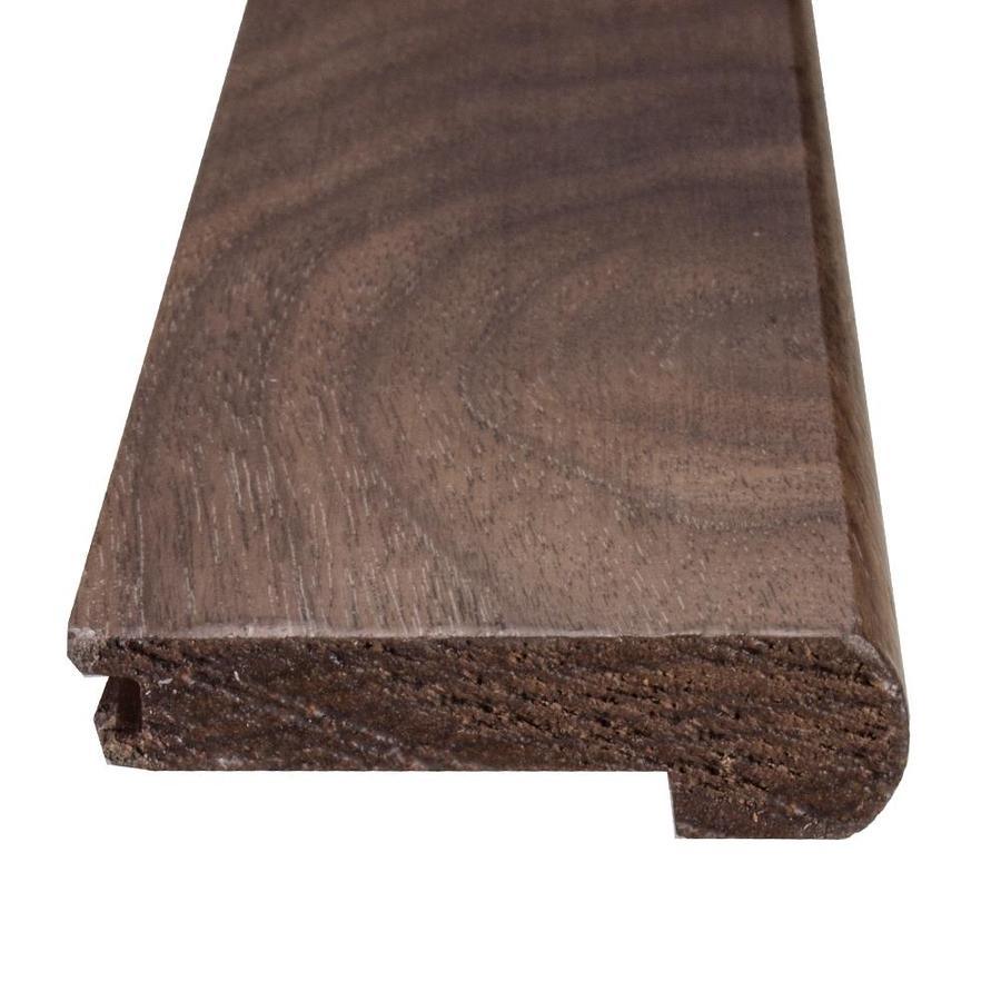 Flexco Briarcliff Walnut stair nosing is designed to take the brunt of foot traffic while maintaining the beauty of the stairs The Briarcliff finish and top coat allow the woods natural beauty to shine through while offering a rich color to match wood flooring Prefinished with an environmentally friendly water-based low VOC polyurethane top coat Made from the finest solid hardwood available for lasting durability See flooring manufacturer guidelines for required underlayment Easily cut for custom finish Each stair nose is 2.75-in W x 0.5-in H x 78-in L Smooth finish for flawless transition to flooring and can be installed in both residential and commercial buildings "Pass-it-on" warranty could not be more simple, we will match the warranty provided by the hardwood flooring manufacturer on any project where our hardwood transitions are used