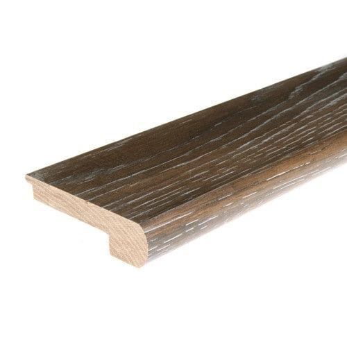 Flexco Iron Grove Hickory overlap stair nosing is designed to take the brunt of foot traffic while maintaining the beauty of the stairs The Iron Grove finish and top coat allow the woods natural beauty to shine through while offering a rich color to match wood flooring Prefinished with an environmentally friendly water-based low VOC polyurethane top coat Made from the finest solid hardwood available for lasting durability See flooring manufacturer guidelines for required underlayment Easily cut for custom finish Each stair nose is 2.75-in W x 0.375-in H x 78-in L Smooth finish for flawless transition to flooring and can be installed in both residential and commercial buildings "Pass-it-on" warranty could not be more simple, we will match the warranty provided by the hardwood flooring manufacturer on any project where our hardwood transitions are used