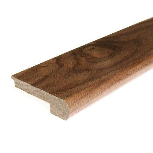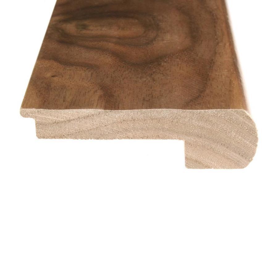Flexco Crescent Walnut stair nosing is designed to take the brunt of foot traffic while maintaining the beauty of the stairs The Crescent finish and top coat allow the woods natural beauty to shine through while offering a rich color to match wood flooring Prefinished with an environmentally friendly water-based low VOC polyurethane top coat Made from the finest solid hardwood available for lasting durability See flooring manufacturer guidelines for required underlayment Easily cut for custom finish Each stair nose is 2.75-in W x 0.375-in H x 78-in L Smooth finish for flawless transition to flooring and can be installed in both residential and commercial buildings "Pass-it-on" warranty could not be more simple, we will match the warranty provided by the hardwood flooring manufacturer on any project where our hardwood transitions are used
