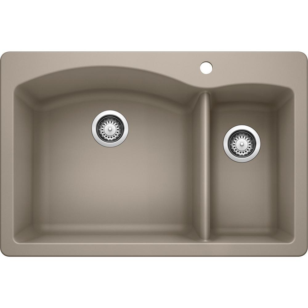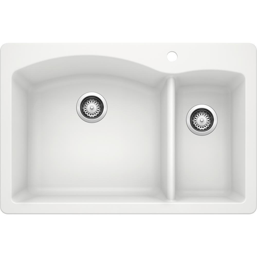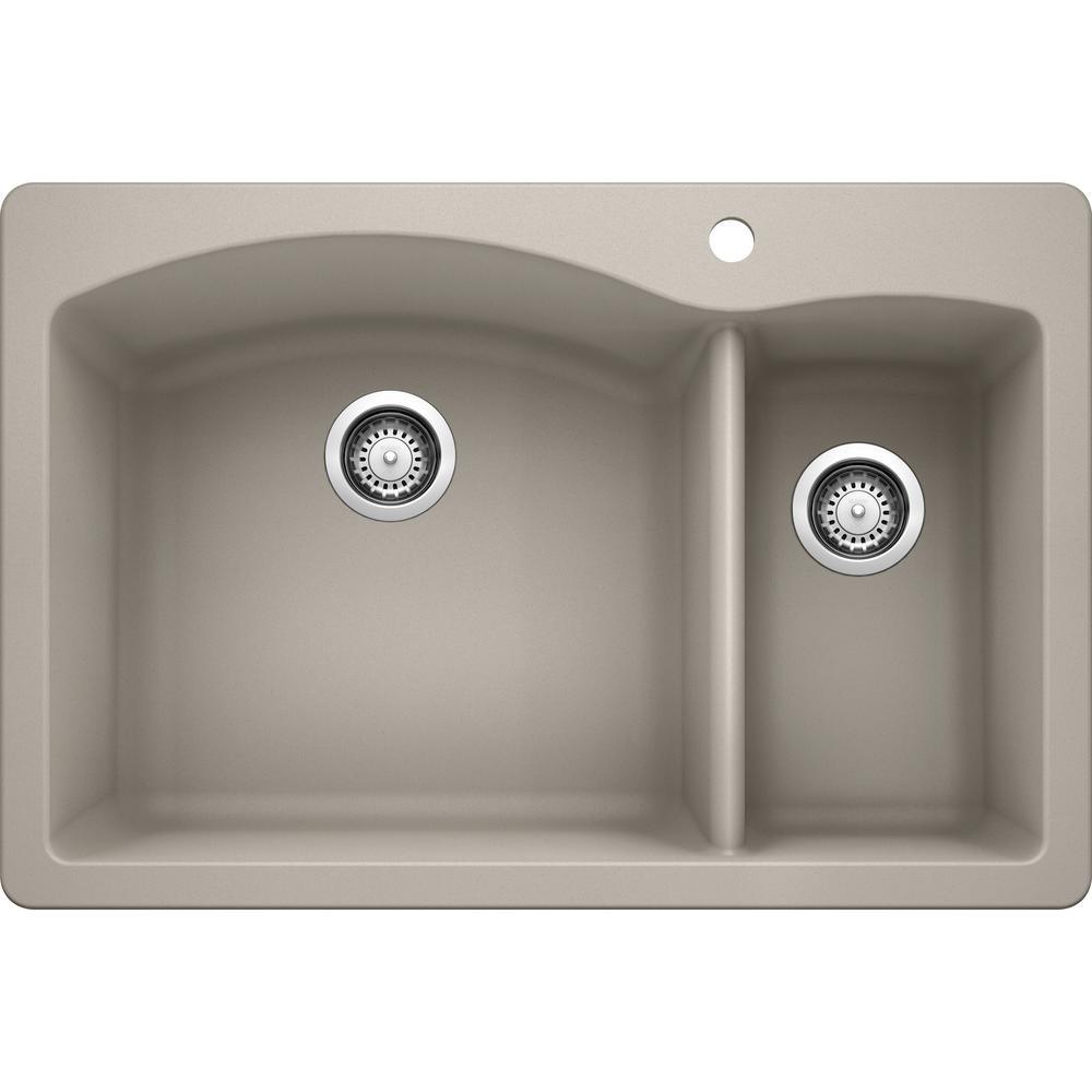 Life in the kitchen can get messy. With over 30 years of material development, SILGRANIT has been engineered to take on the toughest kitchen tasks. BLANCO's patented sink material is strong and more durable than other sink surfaces. There is no risk of thermal shock and SILGRANIT will not blister, burn, melt or discolor from heat. With its non-porous, hygienic surface, it has the ability to push away liquids and residue resulting in a low maintenance, long-lasting material that is not only scratch and stain resistant, but easy to clean. Both an expression of your individual style, and a testament to Blanco's unsurpassed quality and craftsmanship - a variety of shape, sizes and features combine to bring you the DIAMOND collection. Every detail has been considered, from the large bowl capacity to the easy-to-clean, durable SILGRANIT surface. The BLANCO DIAMOND 70/30 DUAL MOUNT KITCHEN SINK offers plenty of room for rinsing, washing, soaking, spraying and straining operations. Create the ideal kitchen experience with the versatility of the DIAMOND collection.