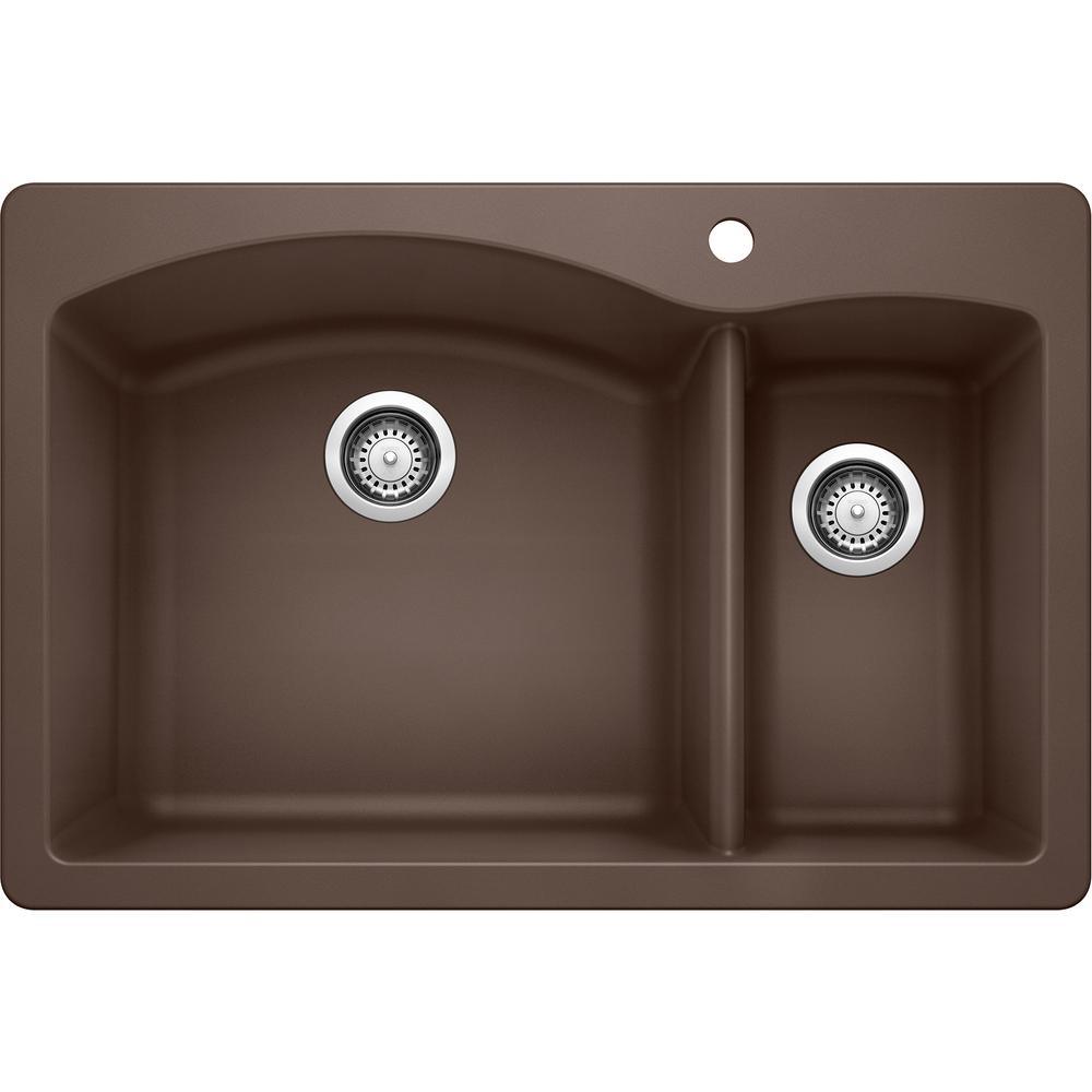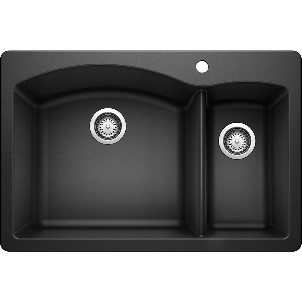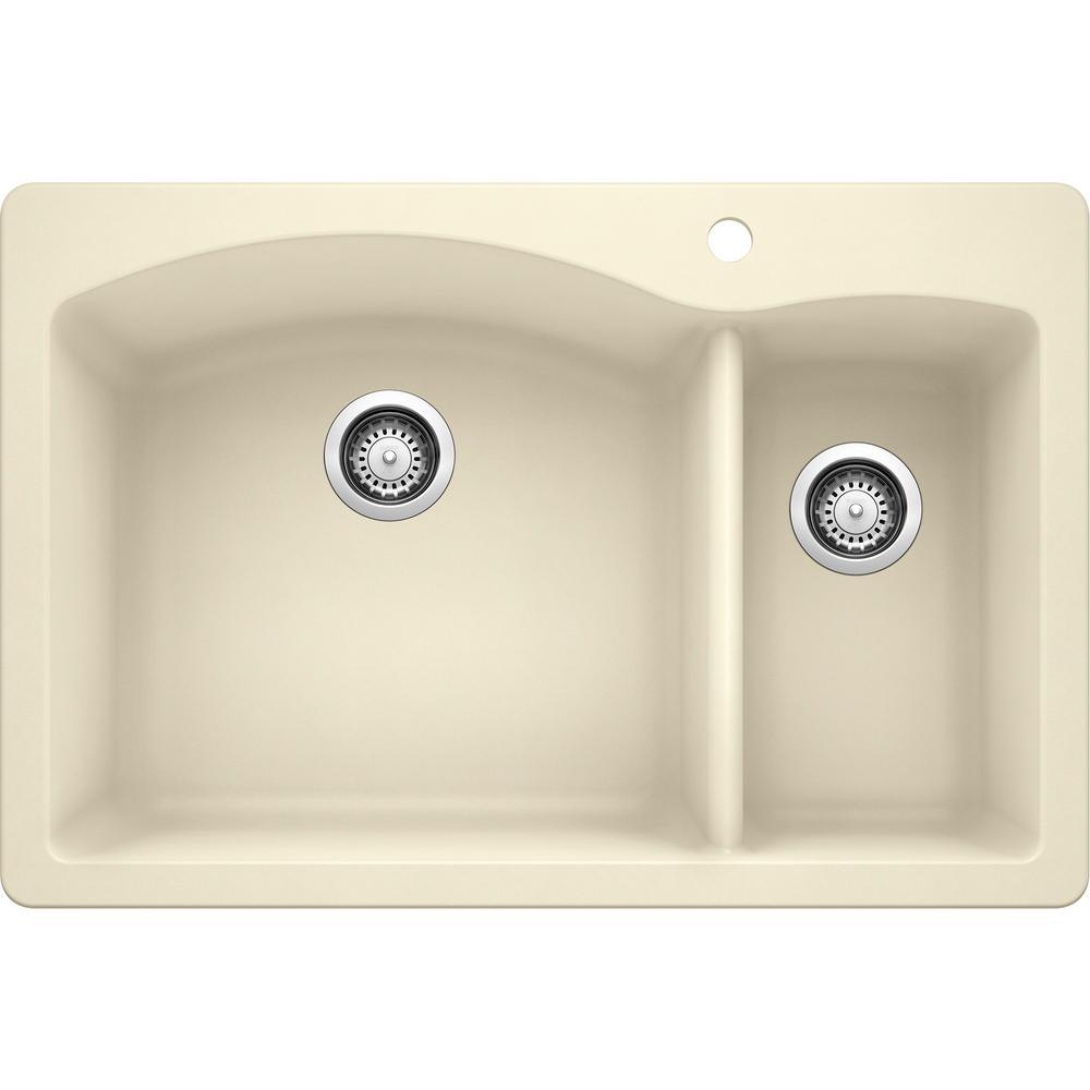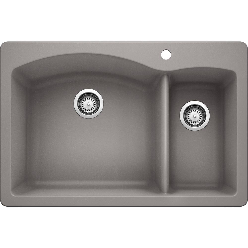 Life in the kitchen can get messy. With over 30 years of material development, SILGRANIT has been engineered to take on the toughest kitchen tasks. BLANCO's patented sink material is strong and more durable than other sink surfaces. There is no risk of thermal shock and SILGRANIT will not blister, burn, melt or discolor from heat. With its non-porous, hygienic surface, it has the ability to push away liquids and residue resulting in a low maintenance, long-lasting material that is not only scratch and stain resistant, but easy to clean. Both an expression of your individual style, and a testament to Blanco's unsurpassed quality and craftsmanship - a variety of shape, sizes and features combine to bring you the DIAMOND collection. Every detail has been considered, from the large bowl capacity to the easy-to-clean, durable SILGRANIT surface. The BLANCO DIAMOND 70/30 DUAL MOUNT KITCHEN SINK offers plenty of room for rinsing, washing, soaking, spraying and straining operations. Create the ideal kitchen experience with the versatility of the DIAMOND collection.