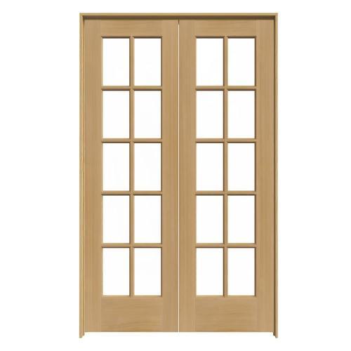 JELD-WEN 10 Lite Wood 48-in x 80-in Unfinished Clear Glass Unfinished Pine Wood Interior French Door (Hardware Included)