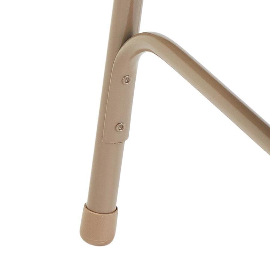 Professional grade vinyl upholstered steel folding chair engineered for heavy-duty use Comfortable full size double-contoured square back and waterfall seat 2 U-shaped double riveted cross braces for added stability Powder coated chip-resistant finish Deep channel v-tip plugs for added stability 18 Gauge frame 7/8-in tubular steel 480 lb weight capacity 10 Year limited warranty Honey brown vinyl with beige frame
