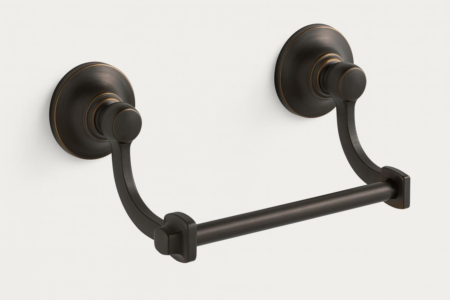 The KOHLER Bancroft toilet paper holder combines timeless design with modern functionality. Crafted from durable brass with an oil-rubbed bronze finish, it resists corrosion and tarnish while adding a touch of elegance to your bathroom.