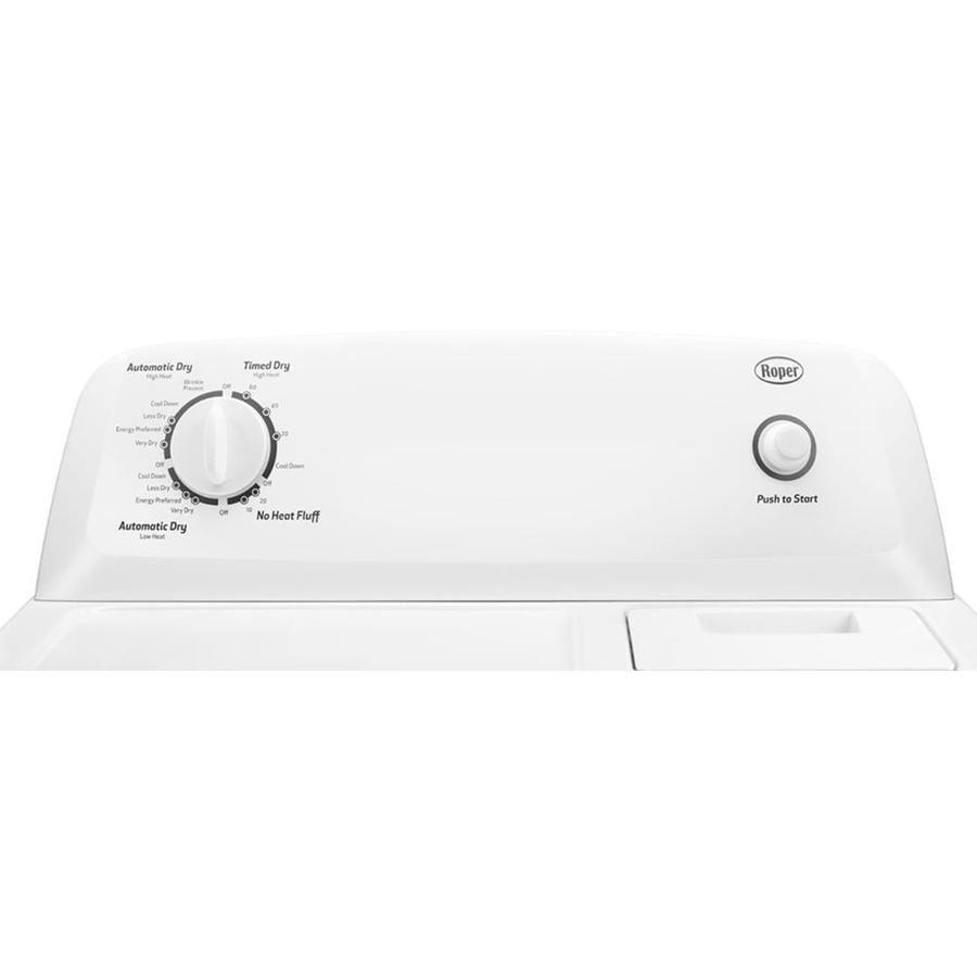 Roper 6.5-cu ft gas dryer offers 10 cycles, including 6 Automatic Dry cycles and Timed Dry choices that range from 20 to 60 minutes