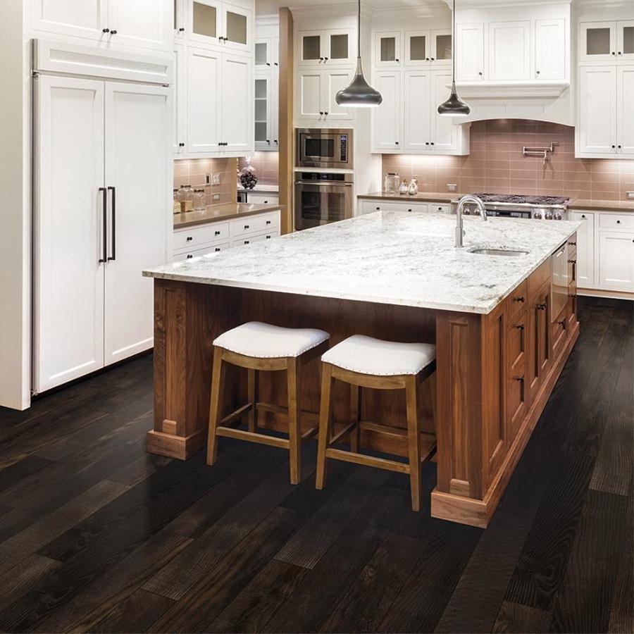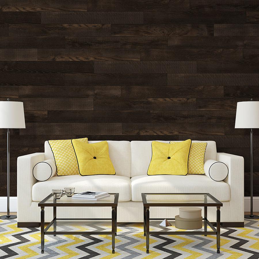 The look of charred oak with a wirebrushed surface and satin gloss finish Flooring samples available to view with key wall and furniture colors Can also be installed on walls to add warmth to rooms and style to spaces Lifetime Limited Warranty, Five-Year Limited Commercial Warranty — featuring Premium PermaMax® wear layer with ScratchGuard Advanced surface protection for superior durability, scratch- and scuff-resistance 12mm thickness for maximum stability and a natural wood-floor sound Easy to install locking system requires no glue and makes installing a laminate floor an easy DIY project - coordinated mouldings available Underlayment is required and we recommend Pergo Gold™ for easier installation and industry leading sound, thermal, and moisture protection FloorScore® certified and TSCA Title VI compliant Manufactured in the USA with content from the America’s and Europe