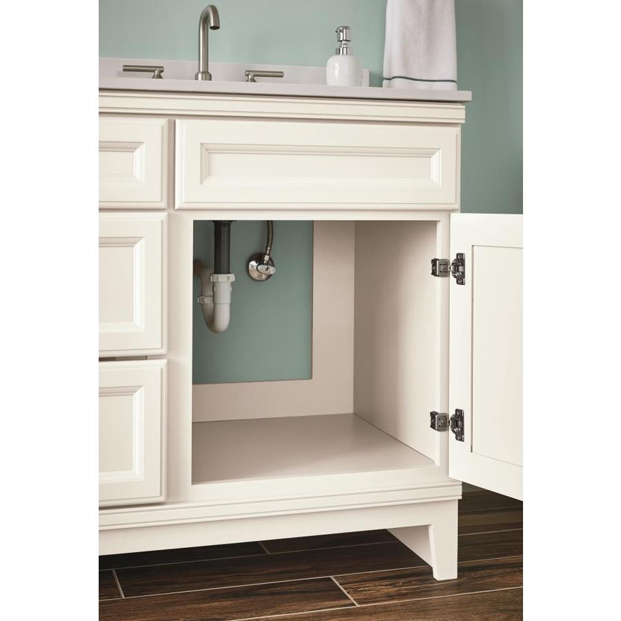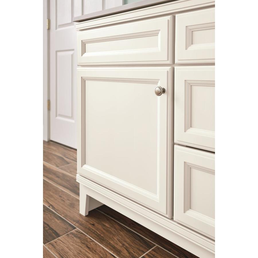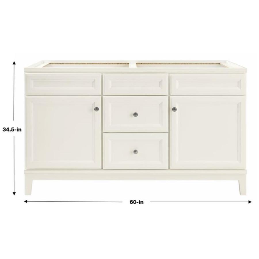 White finish vanity from the Calhoun collection effortlessly blends with every style Features 2 full-extension drawers and 2 cabinet doors Great for transitional style decor Compatible with 61-in W x 22-in D vanity tops (sold separately) 60-In W x 21-in D bathroom vanity Brushed nickel finish hardware adds a touch of shine Fully assembled and ready to be installed Select sizes available for pickup today in stores All collections and sizes available for delivery to store within 7 days or less