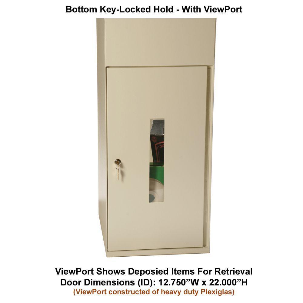 • Unique security-drop door mechanism and rear key-locked storage compartment prevent access to deposited packages (U.S. patent number 6,347,737); note: top vault sold separately