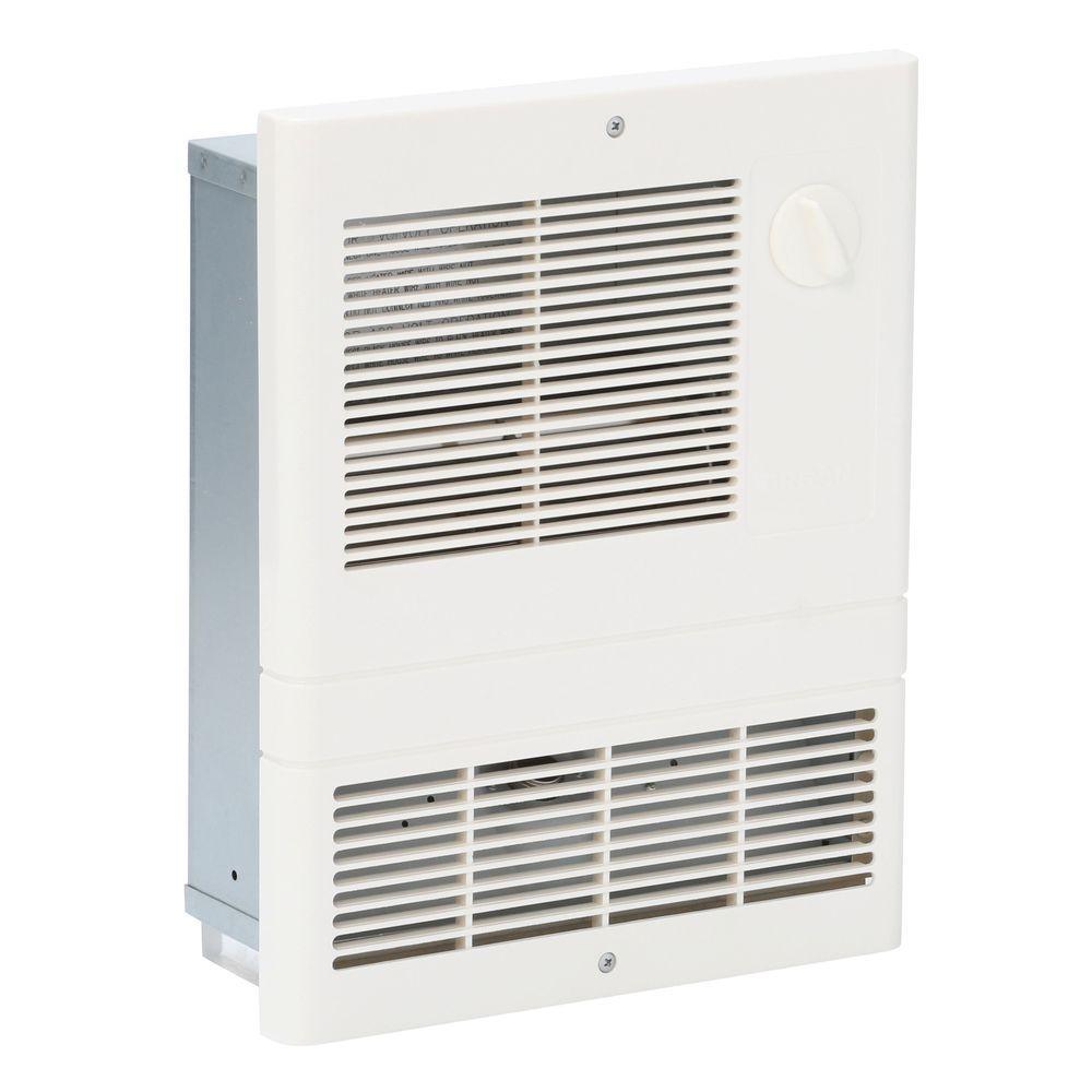 The Broan 10-1/2 in. x 12-1/2 in. 1,500-Watt White Fan-Forced Wall Heater is a large-capacity unit ideal for high heat-loss areas like lobbies, entrance ways and vestibules. This wall heater features a built-in, adjustable thermostat to help you control the temperature of a specific area. This wall heater wires easily to accommodate installation for 120 or 240-volt applications.