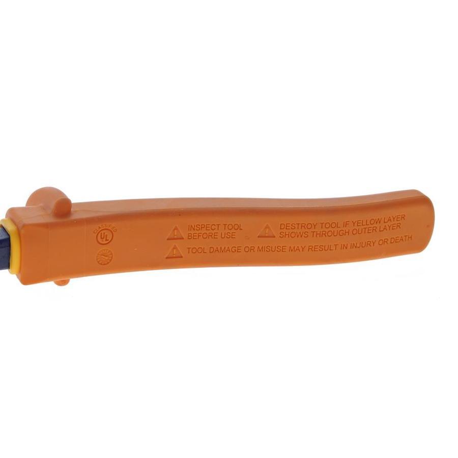 High visibility double insulated handles rated for 1000 Volt certified (1000V AC, 1500V DC) Crimping die for insulated and non-insulated connectors, lugs and terminals Built-in fish tape pulling channel High leverage pivot design provides added cutting power Induction-hardened cutting knives for long life Special cross-hatched jaws for tight hold on wire Meets ASTM F1505-01 and IEC 60 900 standards Meets OSHA requirements for insulated tools (29 CFR 1910) Cuts hardened wire, bolts and ACSR