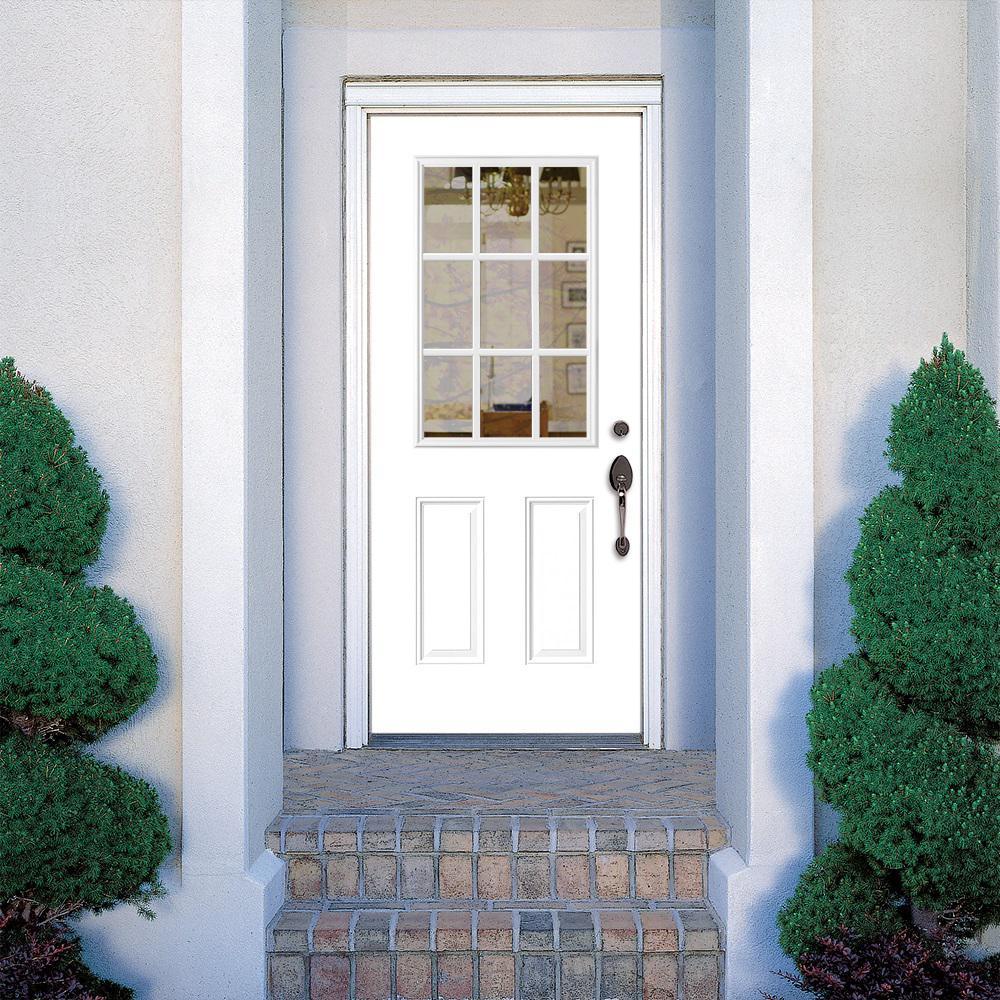 By combining the strength of steel and the elegance of high-definition decorative panels, you will enjoy the ultimate in security and beauty with the Masonite 9 Lite Primed Steel Entry Door with Brickmold. High-definition panels closely replicate the appearance of a high-end wood door with excellent shadow lines for added architectural interest. Expertly engineered, the wood-edge design features an energy saving door core adding strength and insulation. Ready to customize and paint, the baked-on primer helps create a durable, smooth finish.
