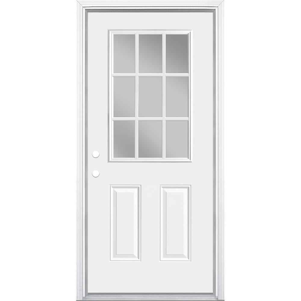 32 in. x 80 in. Premium 9 Lite Primed White Left Hand Inswing Steel Prehung Front Exterior Door with Brickmold
