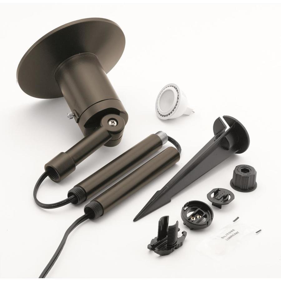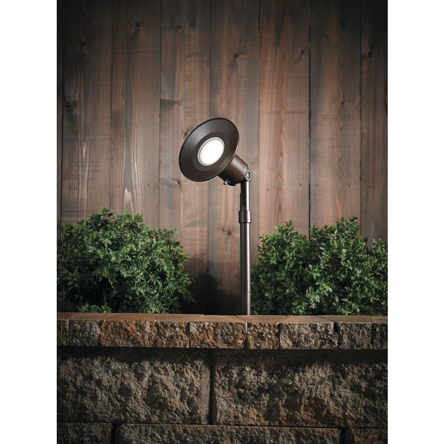 Olde bronze finish landscape flood light will accentuate your property in a pleasant light All-weather aluminum construction with sealed dust-proof Bulb resists water pressure from irrigation systems Includes one 5 watt GU5.3 base LED starter bulb Includes 24-in wire leads to make connections easily All mounting hardware and detailed instructions are included for an easy installation ETL safety listing demonstrates this product has met minimum requirements of widely accepted product safety standards 20-Ft diameter light wash 7-Year limited lifetime warranty with 5 year Bulb limited lifetime warranty Coordinates well with other Kichler landscape lighting products