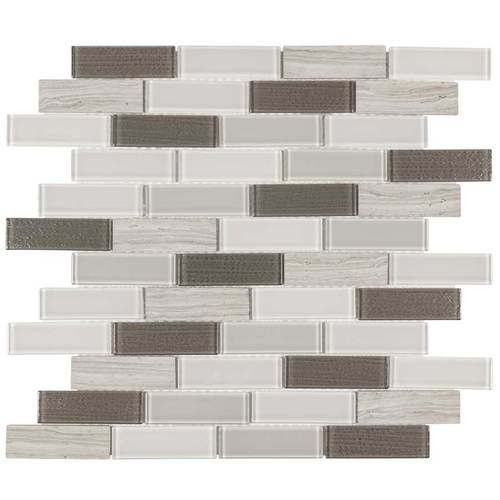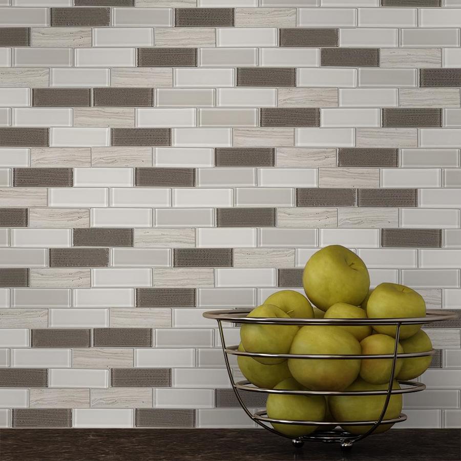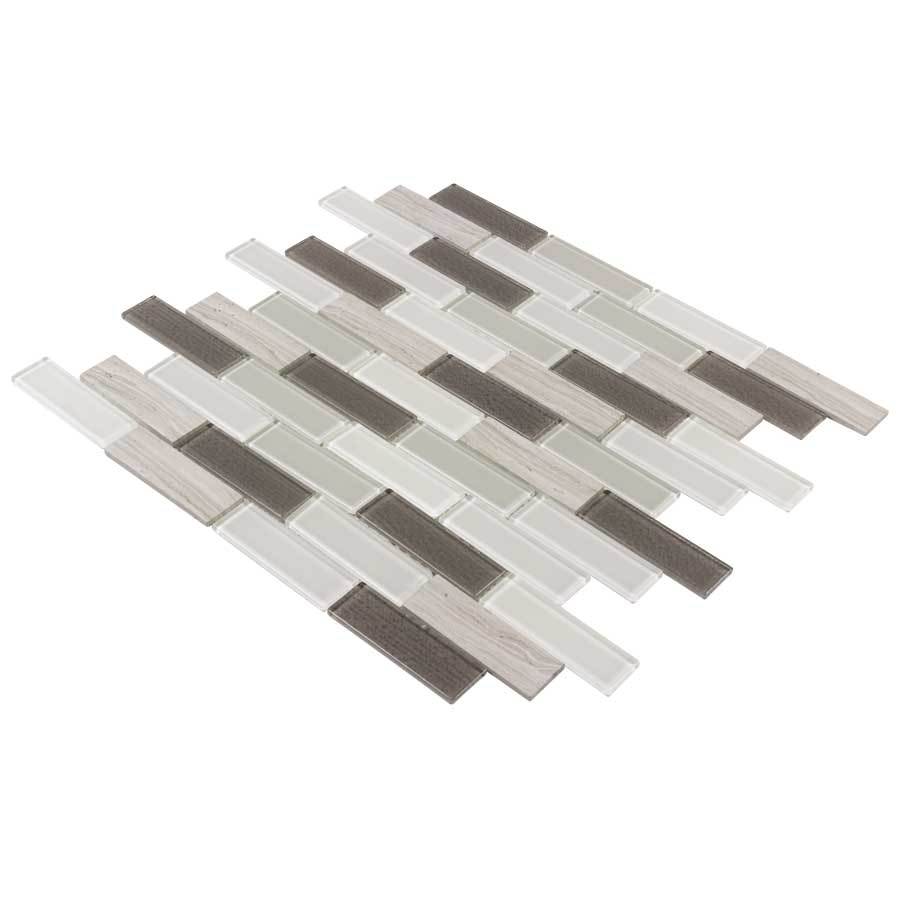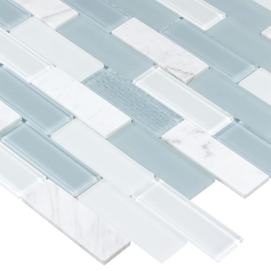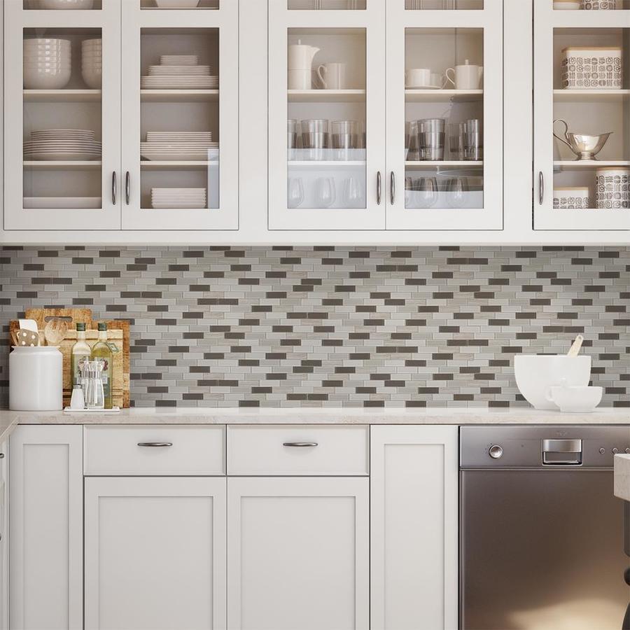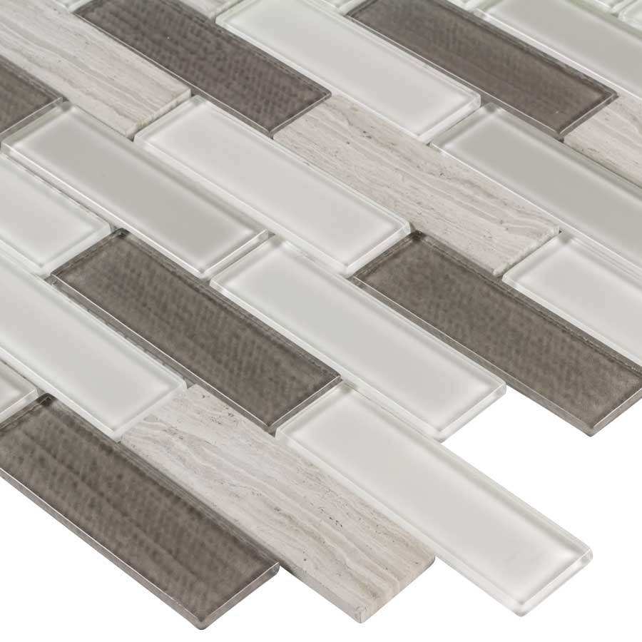 Highlight Linear Blend mosaic stone and glass wall tile brings a dynamic geometric mix to your kitchen or bath