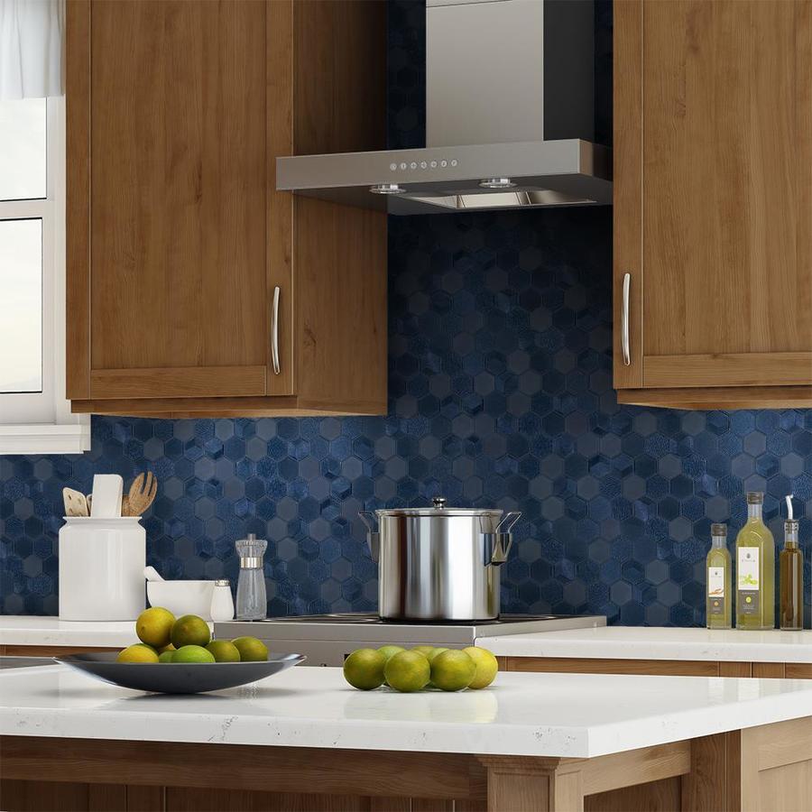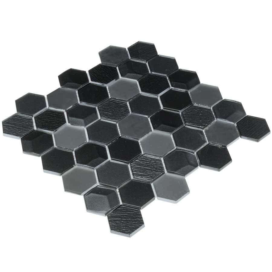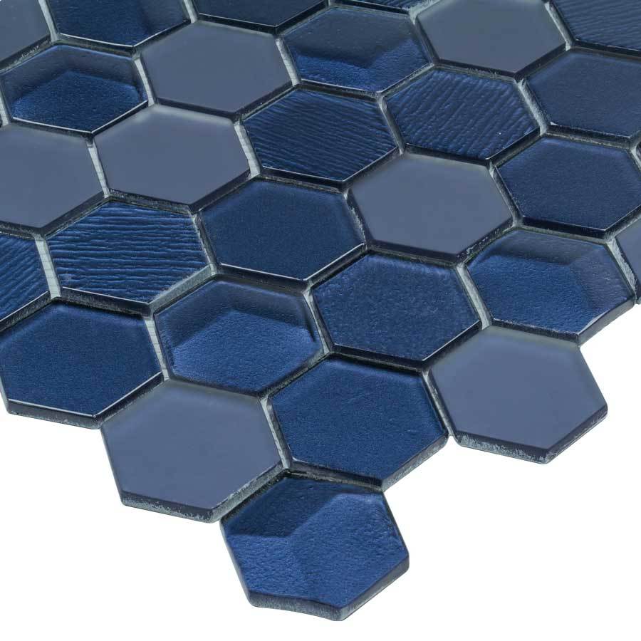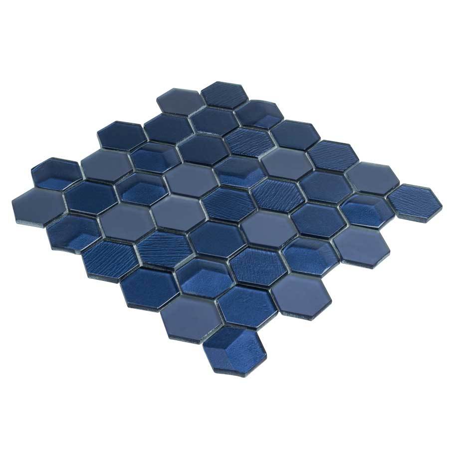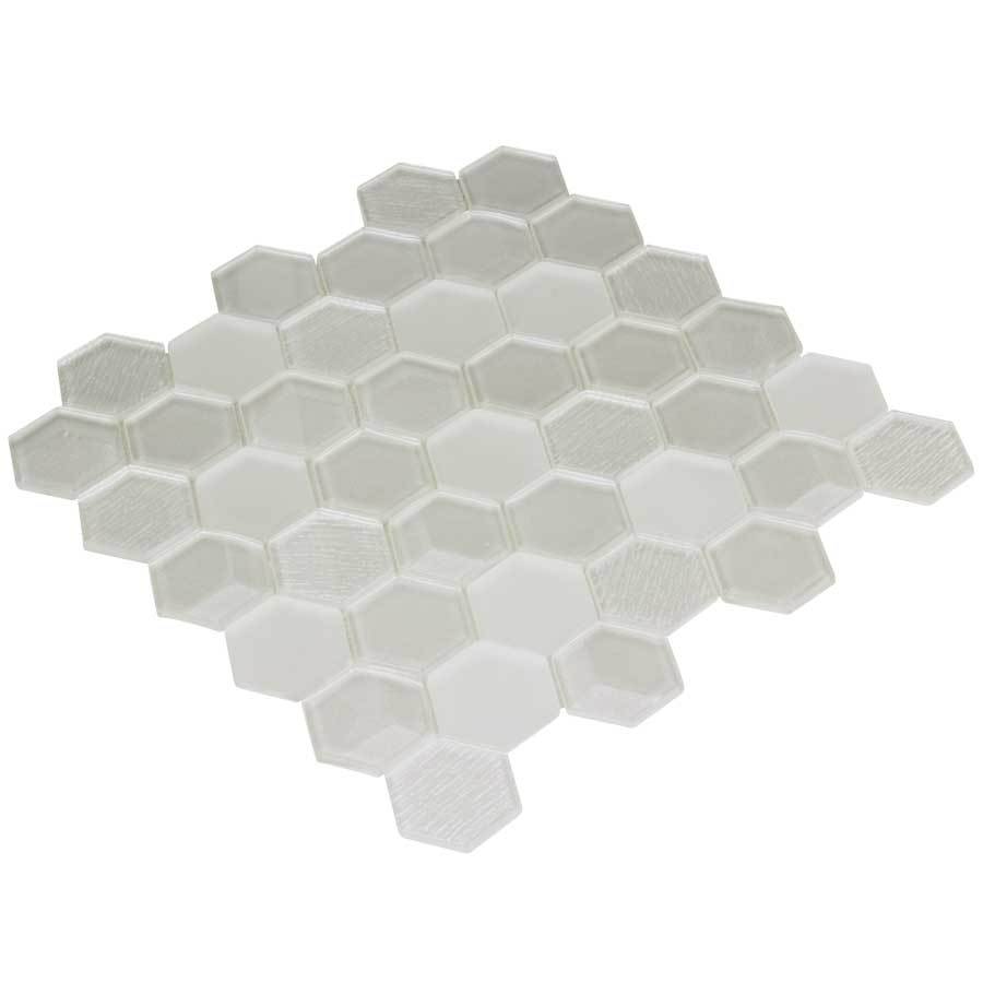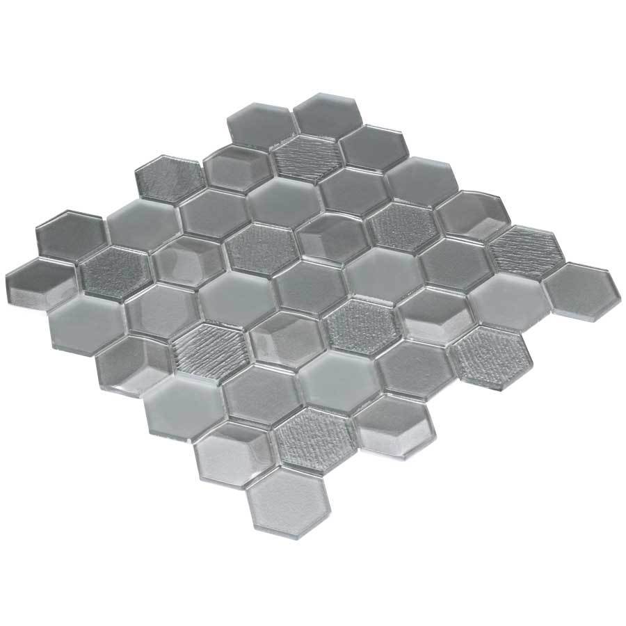 Skylight Hex mosaic glass wall tile accentuates your decor with a beautiful, jeweled design
