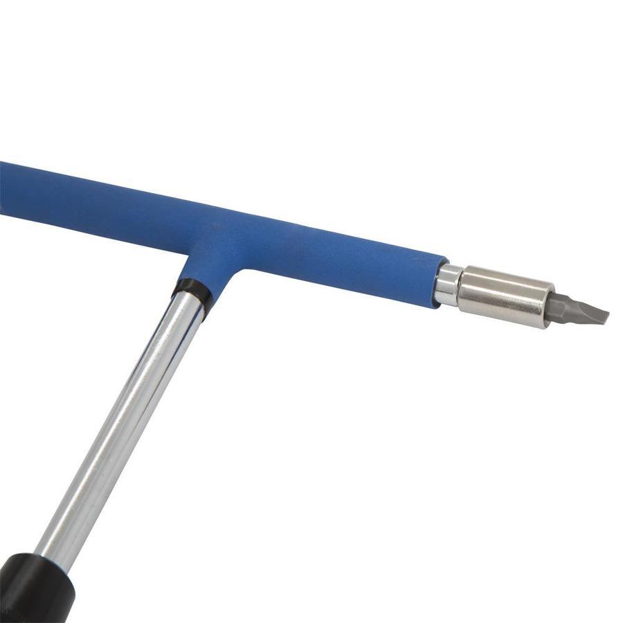 This 17-piece t-handle bit driver set includes a t-handle driver, 15 assorted insert bits and a 1/4-in bit adapter Fifteen 1-inch insert bits include 3 Phillips, 3 slotted, 5 SAE hex and 4 metric hex shapes The free spinning collar allows speedy fastener removal or installation The square drive in the handle transfers 3X torque application T-handle drives 1/4-in drive sockets, and with included bit adapter, can drive any 1/4-in drive insert bit Extended t-handle length makes it simple to reach deeply set or hard-to-reach fasteners Meets or exceeds ASME specifications Hassle-free lifetime guarantee