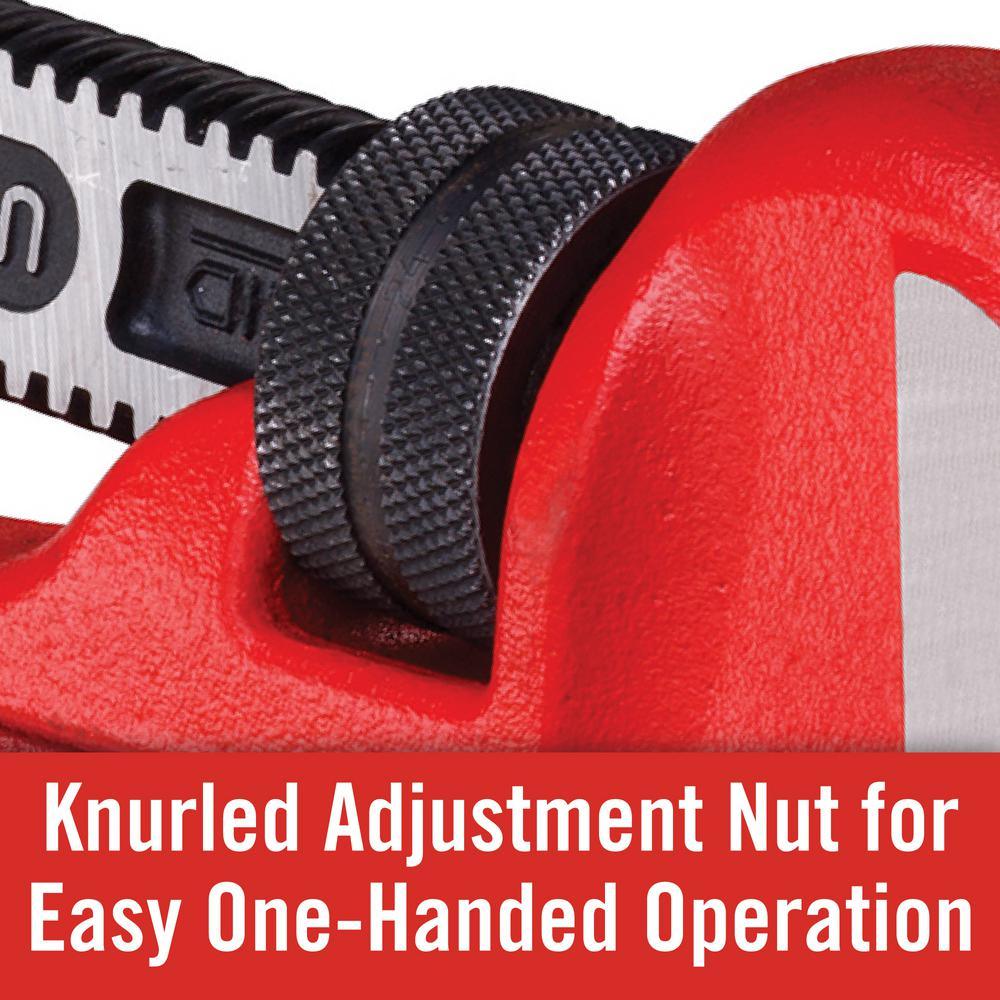 • Straight pipe wrench features a non-stick adjustment nut for worry-free operation