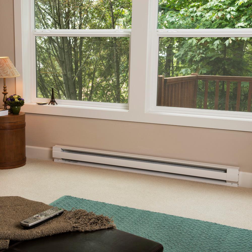 The Cadet Electric Baseboard Heater utilizes convection heat to provide efficient warmth. The quiet operation and low-cost installation make it a perfect choice for a bedroom or any area of your home that requires additional warmth. Designed for ease of installation with pre-punched mounting holes, this hardwired heater can be wired at either end. Rugged U.S.A steel construction with powder coated white paint for a durable, premium finish. A thermostat is required and sold separately.