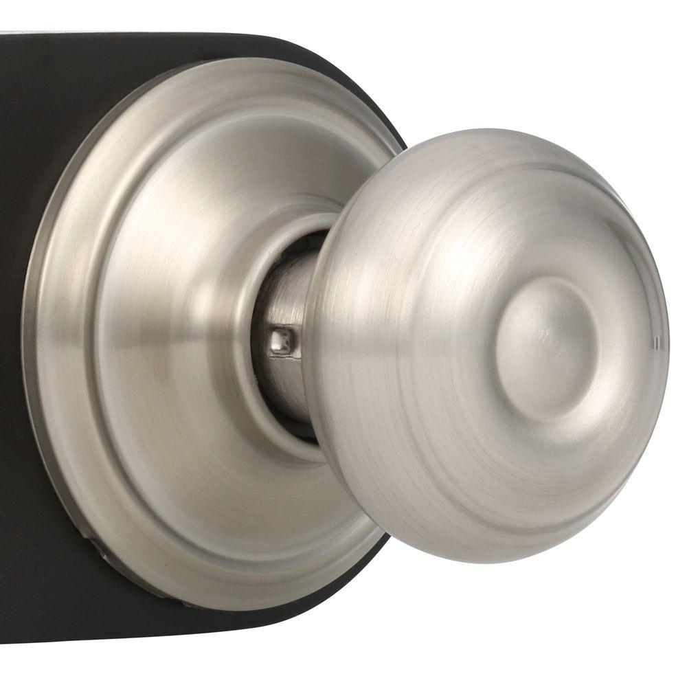 The Schlage Georgian Satin Nickel Passage Door Knob is a stylish flat-ball door handle perfect for use on hall and closet doors where locking is not needed. The Georgian Knob features symmetrical detailing for a distinguished look in your home- especially when wrapped in our versatile Satin Nickel finish. The universal design allows it to be mounted to left or right swing doors and the finish coordinates nicely with other satin nickel fixtures in the house for a cohesive look. The workmanship and lustrous finish are protected by a lifetime limited warranty, certain to provide decades of dependable use and allure. Plus, it’s been designed and tested with strength and durability in mind.