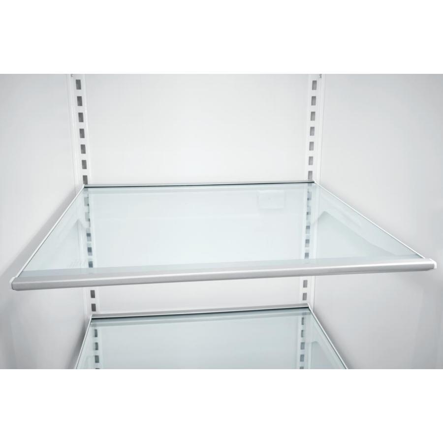 Store-More™ glass shelves with metallic trim