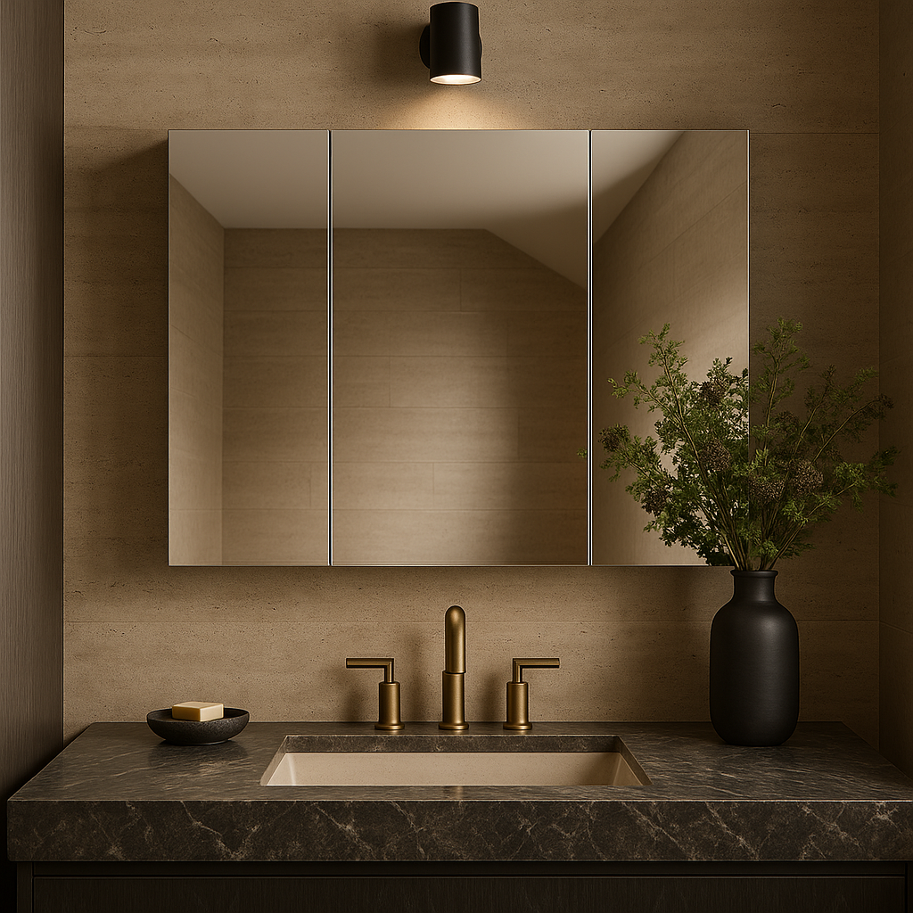 - Tri-View Mirror Design: Provides superior visibility with mirrors on the front, inside door, and back panel.
