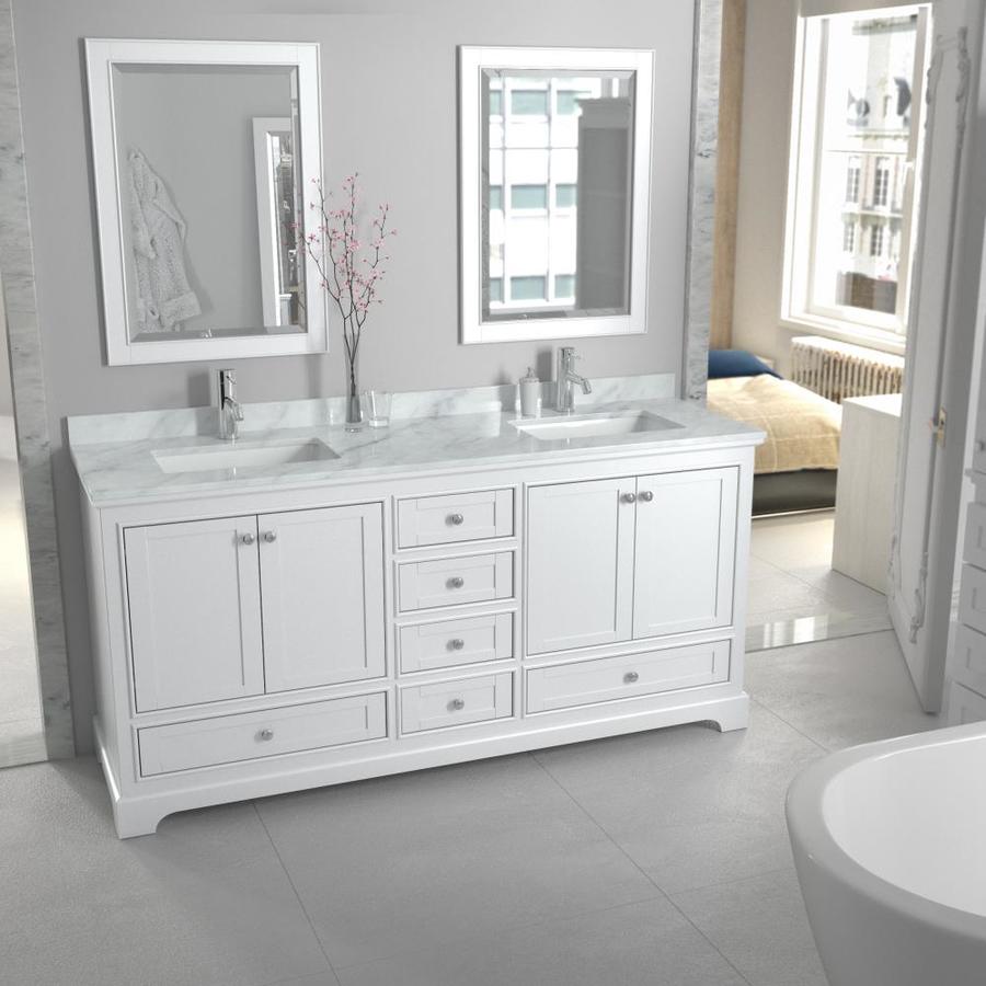 Wyndham Collection Deborah 72-in White Double Sink Bathroom Vanity with White Carrara Natural Marble Top