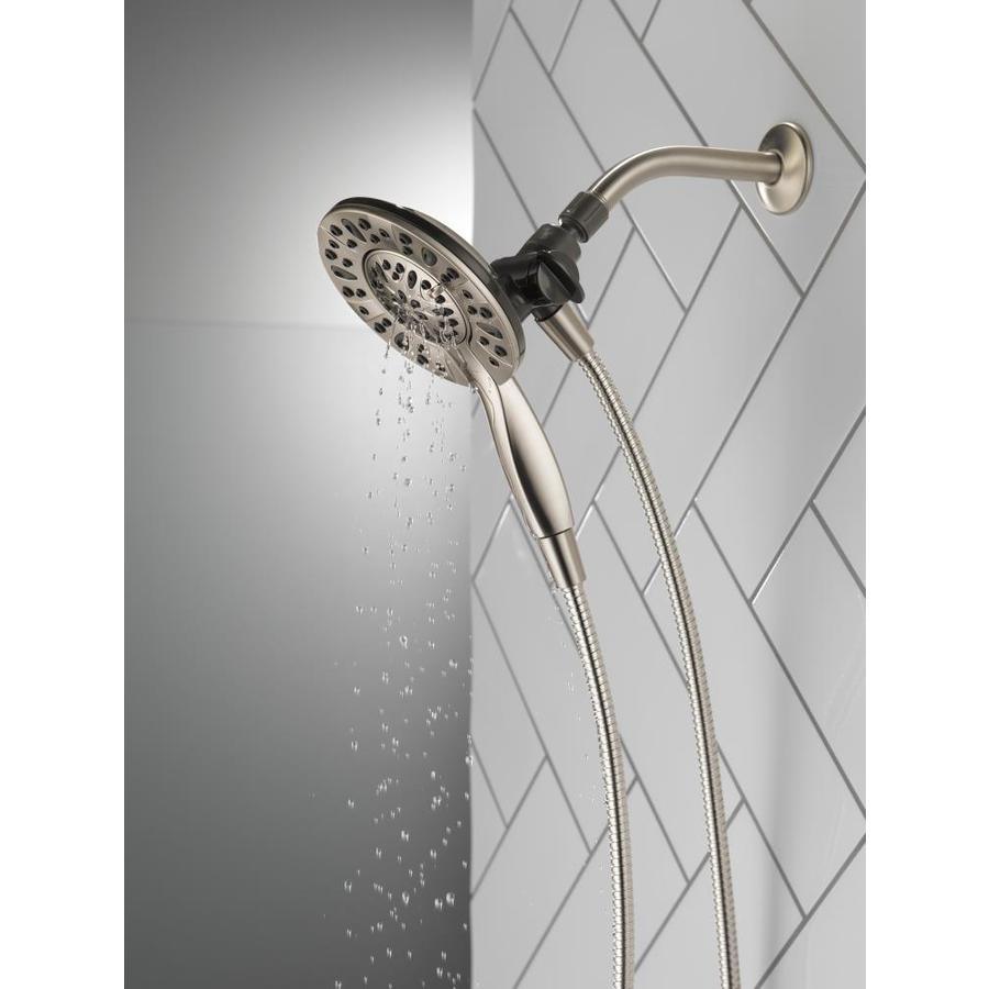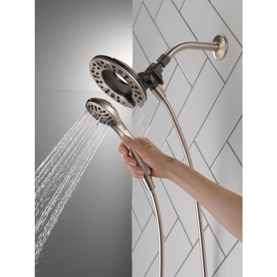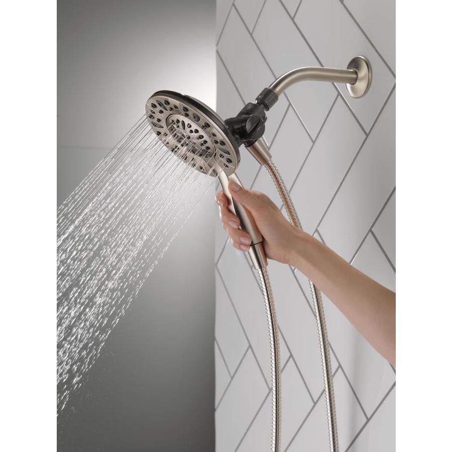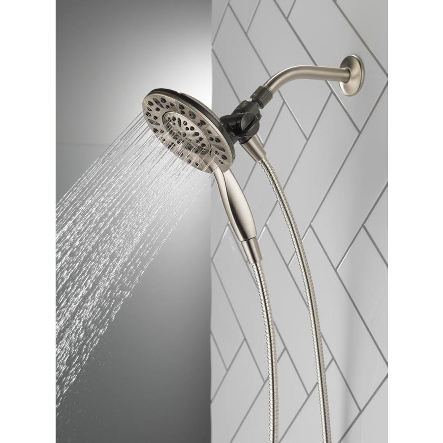 The In2ition® Two-in-One Shower gets water where you need it most using the integrated shower head and hand shower separately or together Perfect for bathing loved ones and pets as well as keeping the inside of your shower and tub clean Soft, rubber Touch-Clean® spray holes allow you to easily wipe away calcium and lime build-up from the spray face of your shower head and hand shower with the touch of a finger Installs in minutes Spray settings include: full body spray, full spray with massage, massaging spray Pause feature reduces water to a trickle, giving you space for shaving, lathering and other shower tasks while maintaining your temperature settings Includes 60-in hose