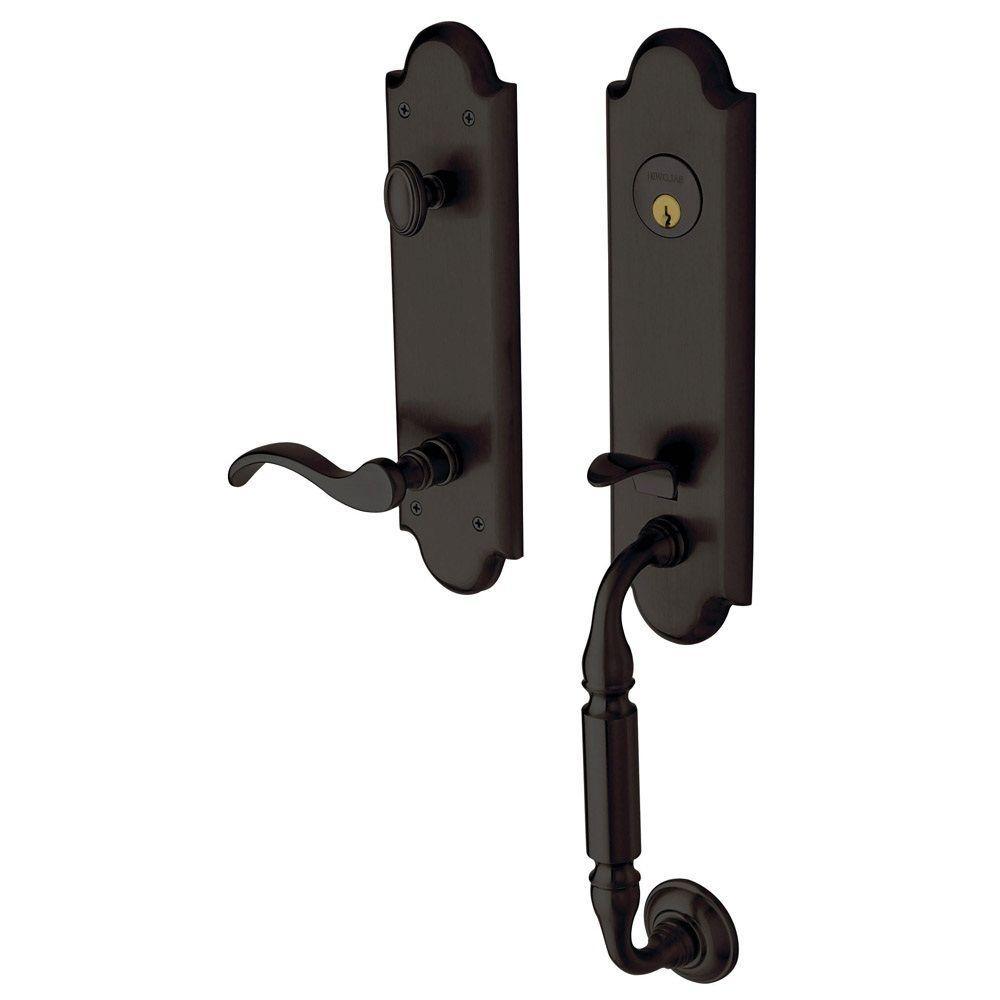 Baldwin Images Collection Manchester Single Cylinder Satin Nickel Right-Handed Handleset with Wave Lever features a crisp, clean satin nickel finish. The forged-brass construction offers durability, and the handleset includes hardware for convenient installation. The levers can be easily locked or unlocked with a key on the outside or with a turn button on the inside.