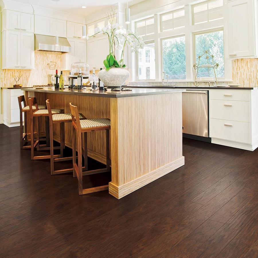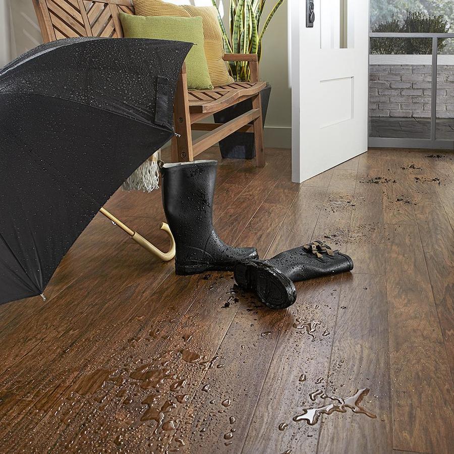 QuickStep Studio® water-resistant floors with a SpillRepel™ guarantee that protects against everyday spills and messes This rich, brown floor features a handscraped surface and medium-gloss finish that complements any design style Classic styled floors with natural color shading and grain are perfect for any dcor 10mm thickness for greater stability and sound control This laminate floor features an underlayment pad saving you time and money The click-lock system requires no glue and makes this water-resistant floor easy to install –– coordinated moldings available Underlayment attached, but for enhanced performance we recommend Pergo Gold™ for increased thermal comfort, sound insulation and moisture protection For easy installation, check out our install videos below - this floor can also be installed on walls to add warmth to rooms and style to spaces FloorScore® certified and TSCA Title VI compliant, manufactured in the USA with content from the Americas and Europe
