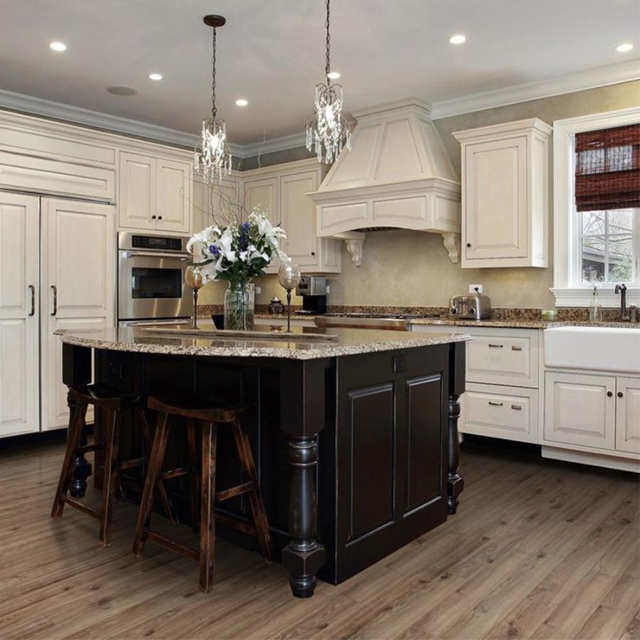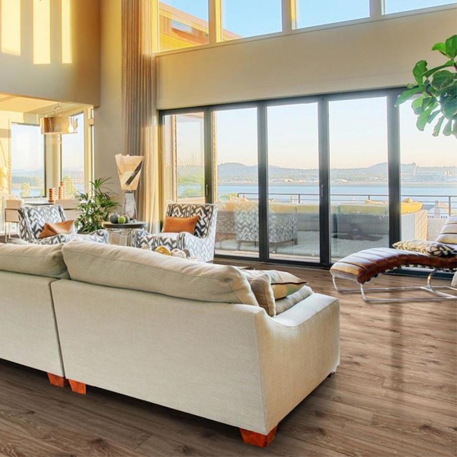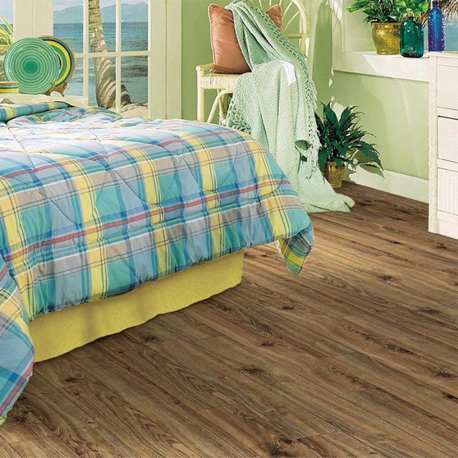 Handscraped texture adds the look of authentic weathered wood while four-sided beveled edges add individual plank definition Weathered grays and browns bring that classic coastal look to any home, anywhere Easy to install locking system requires no glue and makes installing a laminate floor an easy DIY project; coordinated mouldings available FloorScore® Certified and CARB Phase 2 Compliant Manufactured in the USA with materials from the USA and Europe