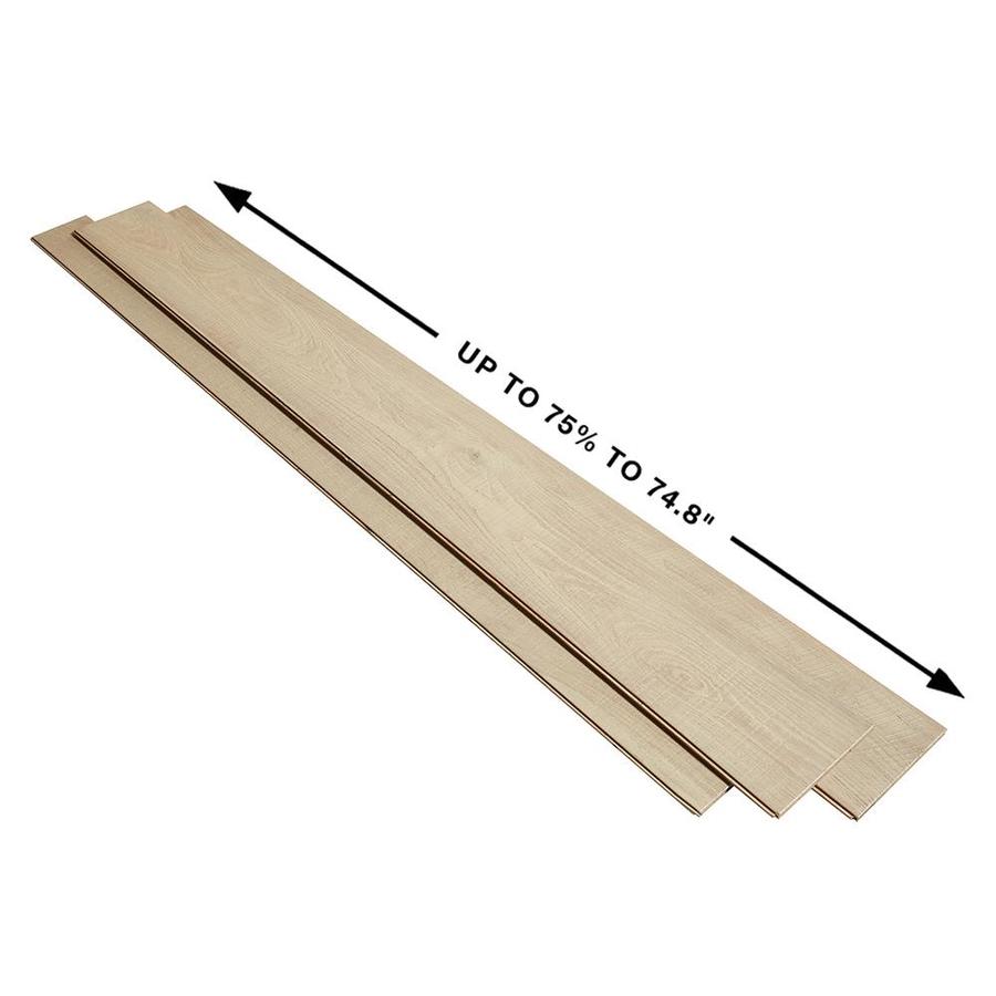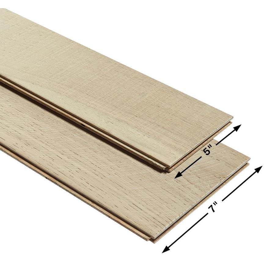 Upscale up to 74.8 In. longer and wider boards which add value and elegance to any room in your home Unique Sawmark texture gives a true reclaimed natural look and feel On trend colors for a perfect match to all decor and interiors in your home 24.93 sq ft. per case and 41.09 lbs per carton Wood species: French Oak/construction: 7 ply cross grain engineered hardwood flooring Pre-finished, ultra-low-gloss Bona finish, elegantly wire brushed with unique circular and straight saw marks Planks have hand rolled edges and ends Janka wood hardness rating/resistance to denting: 1360 Appropriate grade for installation: all grades