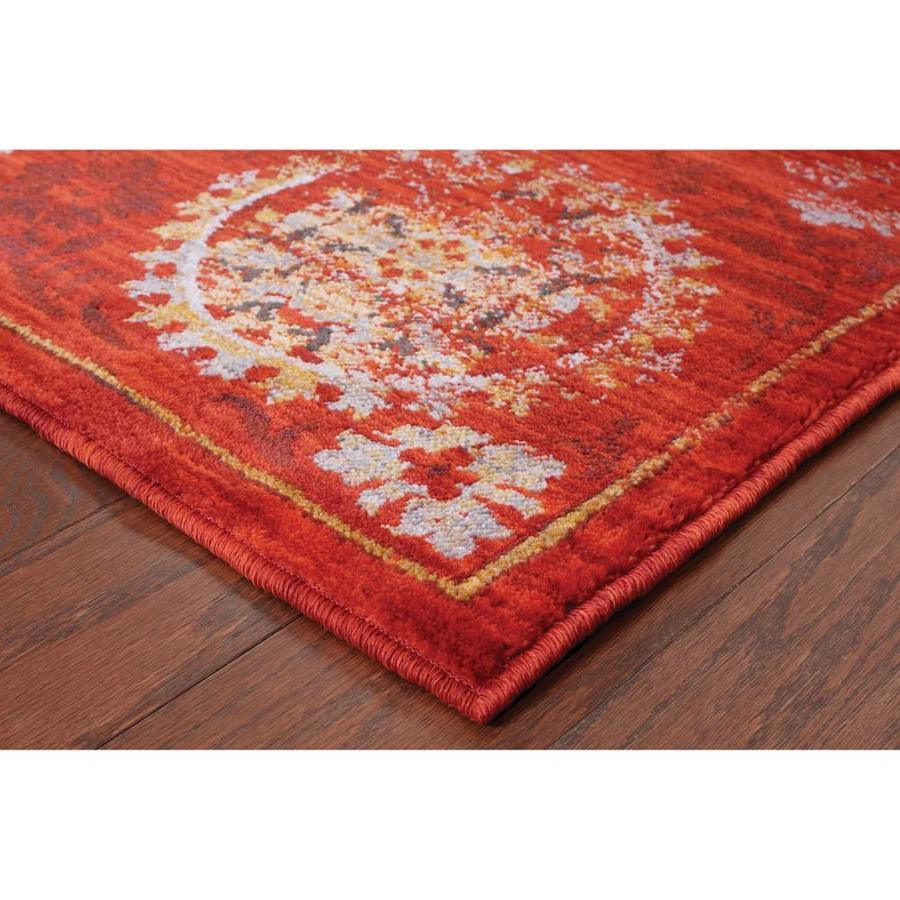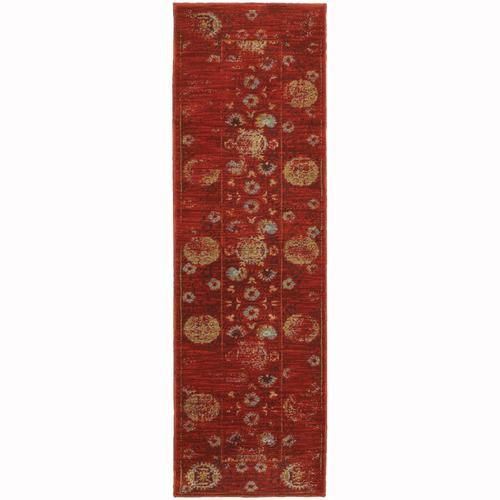 Narcissus is a bold casual/traditional styling and high fashion translation of a distressed/floral pattern Machine woven of a nylon/polypropylene blend for strength and shine 0.4-in pile height offers lasting durability and easy cleaning Rug pad recommended to prevent slipping for added safety, and extend the life of your rug (pad sold separately) Spot clean with mild detergent and vacuum regularly to keep rug looking like new This design features heavily saturated shades of carnelian red, charcoal, and saffron gold Initial creasing is normal and the creases will fall out within a few weeks, we advise reverse rolling to aid in the removal of creases 2-ft 3-in x 7-ft 6-in size is perfect for hallways and staircases