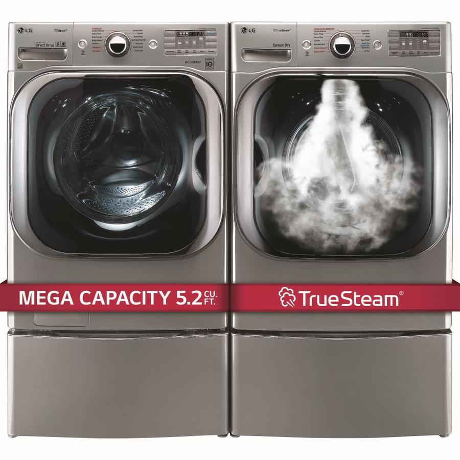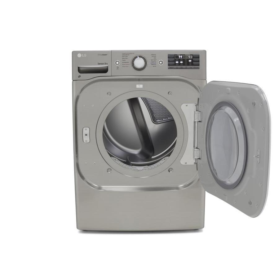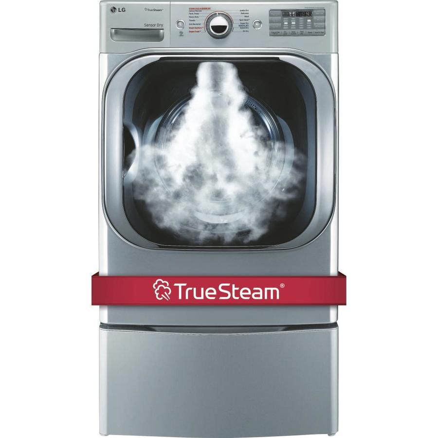 With 9.0 cu. ft. of Mega capacity, you can fit a full set of king size bedding in a single load TrueSteam technology generates real steam to reduce wrinkles and odors, practically eliminating the need for ironing SmartDiagnosis helps the service center diagnose any problems over the phone or with a simple smart phone app The FlowSense duct clogging indicator will tell you when it's time to clean the ducts out The SteamFresh cycle allows you to reduce wrinkles and odors in up to 5 garments at a time with a quick 20-minute steam cycle The SteamSanitary cycle safely sanitizes items marked as non-washable such as throw pillows and backpacks The Sensor Dry system measures the temperature and moisture levels during the cycle and automatically adjusts the drying time The NeveRust stainless-steel drum is built to last, but never show its age The ReduceStatic option injects steam into the drum towards the end of the cycle, virtually eliminating static cling