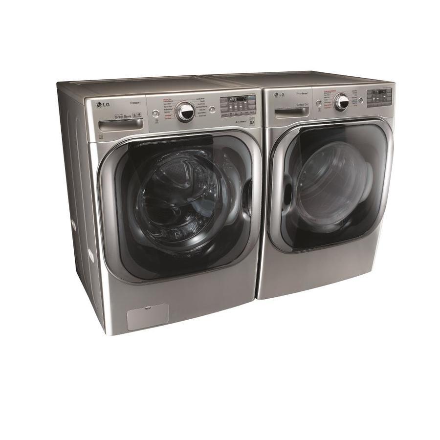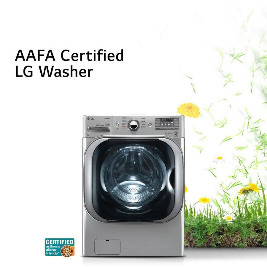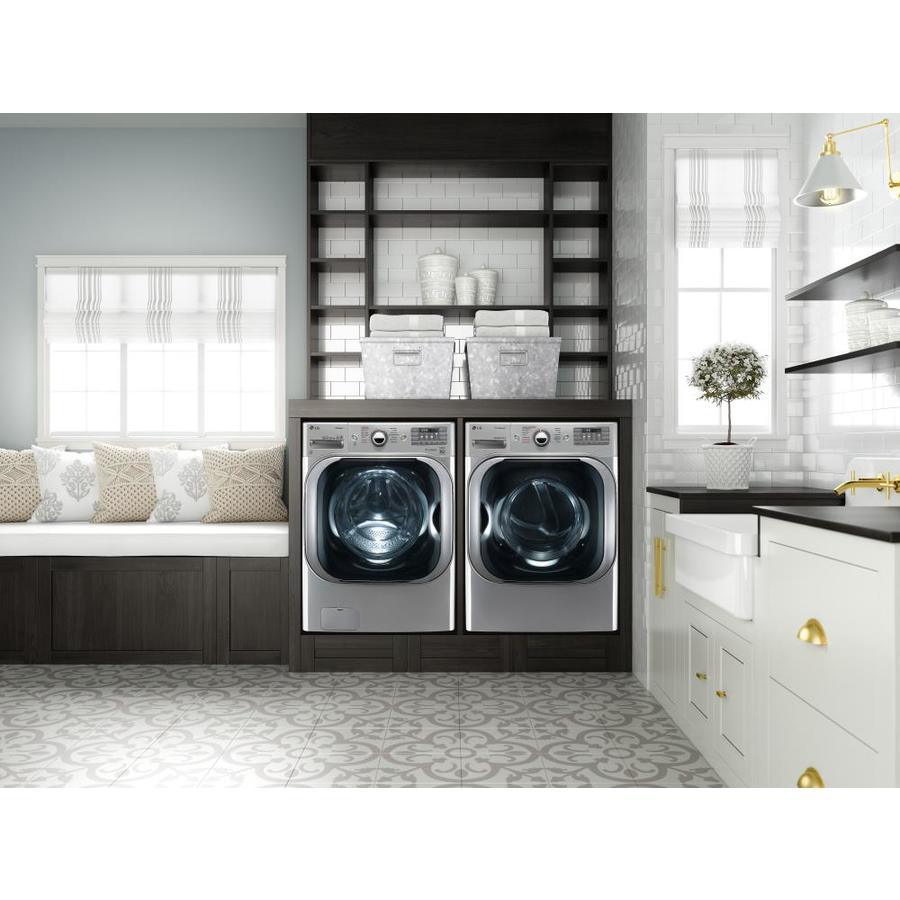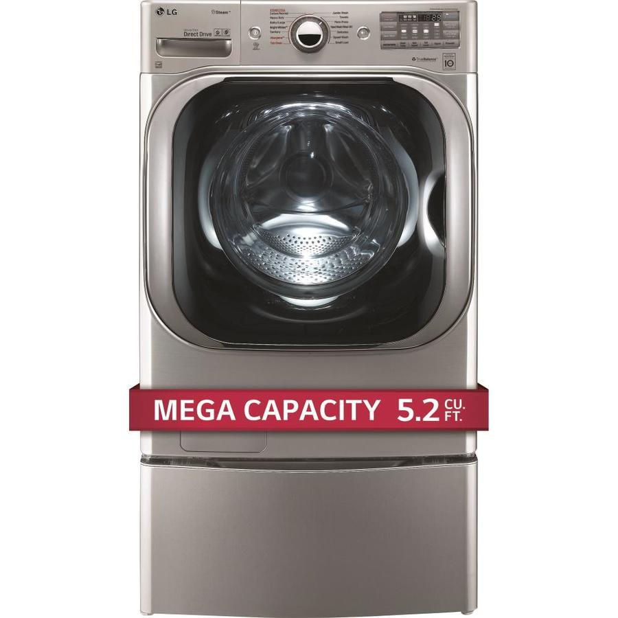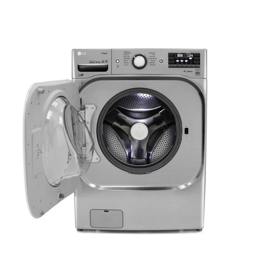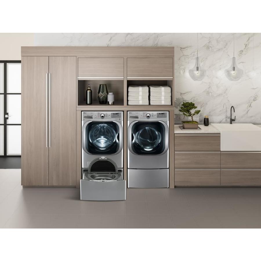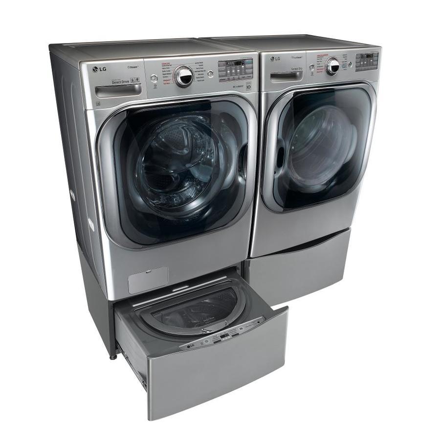 With the largest capacity washer available in it's class, you can fit a comforter and full set of king size bedding in a single load Give big loads the same great clean while cutting your wash time by up to 30 minutes with LG’s enhanced TurboWash technology Our steam technology deeply penetrates fabrics for gentle cleaning power Based on the cycle you select, LG 6Motion™ technology uses up to 6 different wash motions, each designed to get clothes cleaner and help them last longer This LG wash is LG Sidekick (WD200CV) compatible, which means you can add the mini pedestal washer to your front load washer and tackle two loads at once LG’s LCD Display helps you find the right setting every time Rely on your LG washer with a 10-year limited warranty on the Direct Drive Motor LG’s own Extra Wide Door Opening design enables easier loading and unloading Customize your washer and dryer and troubleshoot even more efficiently with LG’s NFC Tag-On technology