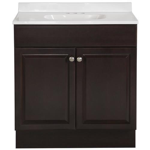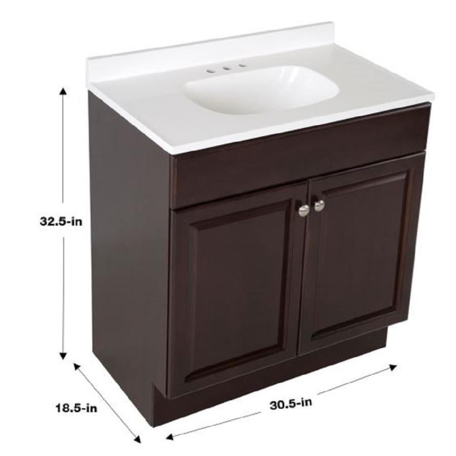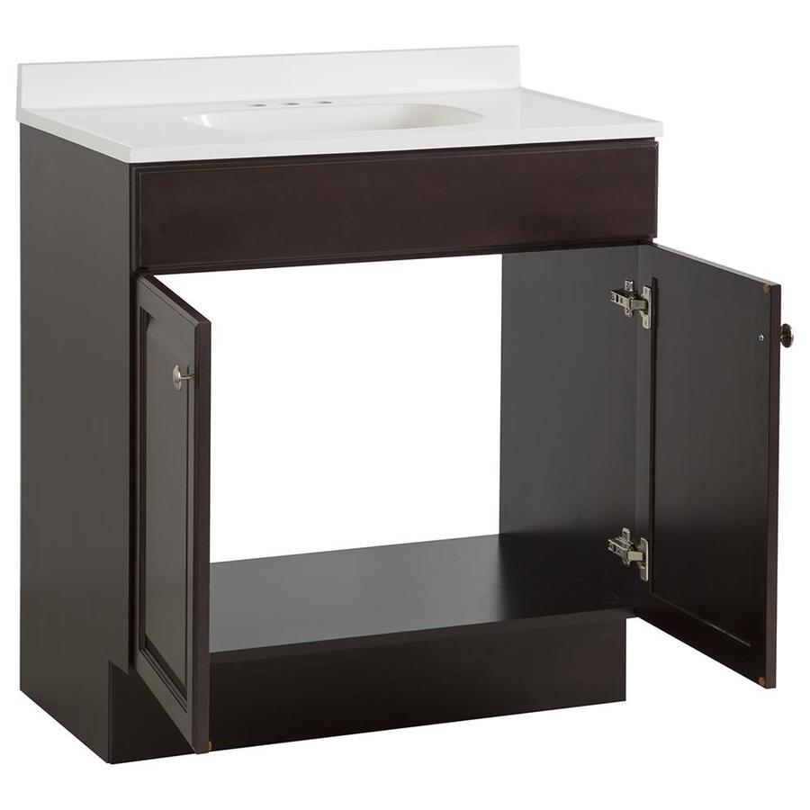 Project Source 30-in Java Single Sink Bathroom Vanity with White Cultured Marble Top