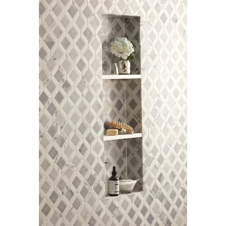 Elegant white and grey natural marble mosaic Suitable for floor, walls, backsplashes Not suitable for applications that are submerged in water