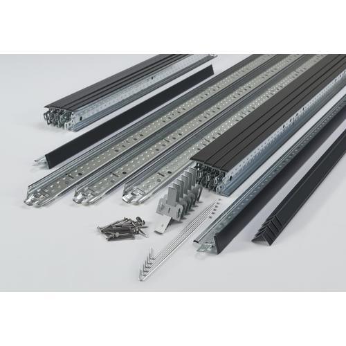 Contains three 6-ft main beams, nine 4-ft cross tees, nine 2-ft cross tees, five 6-ft wall moldings, six 12-in QuickHang™ hooks, six joist brackets, and forty nails