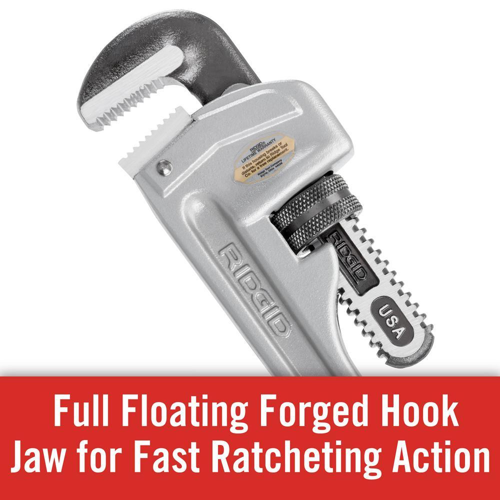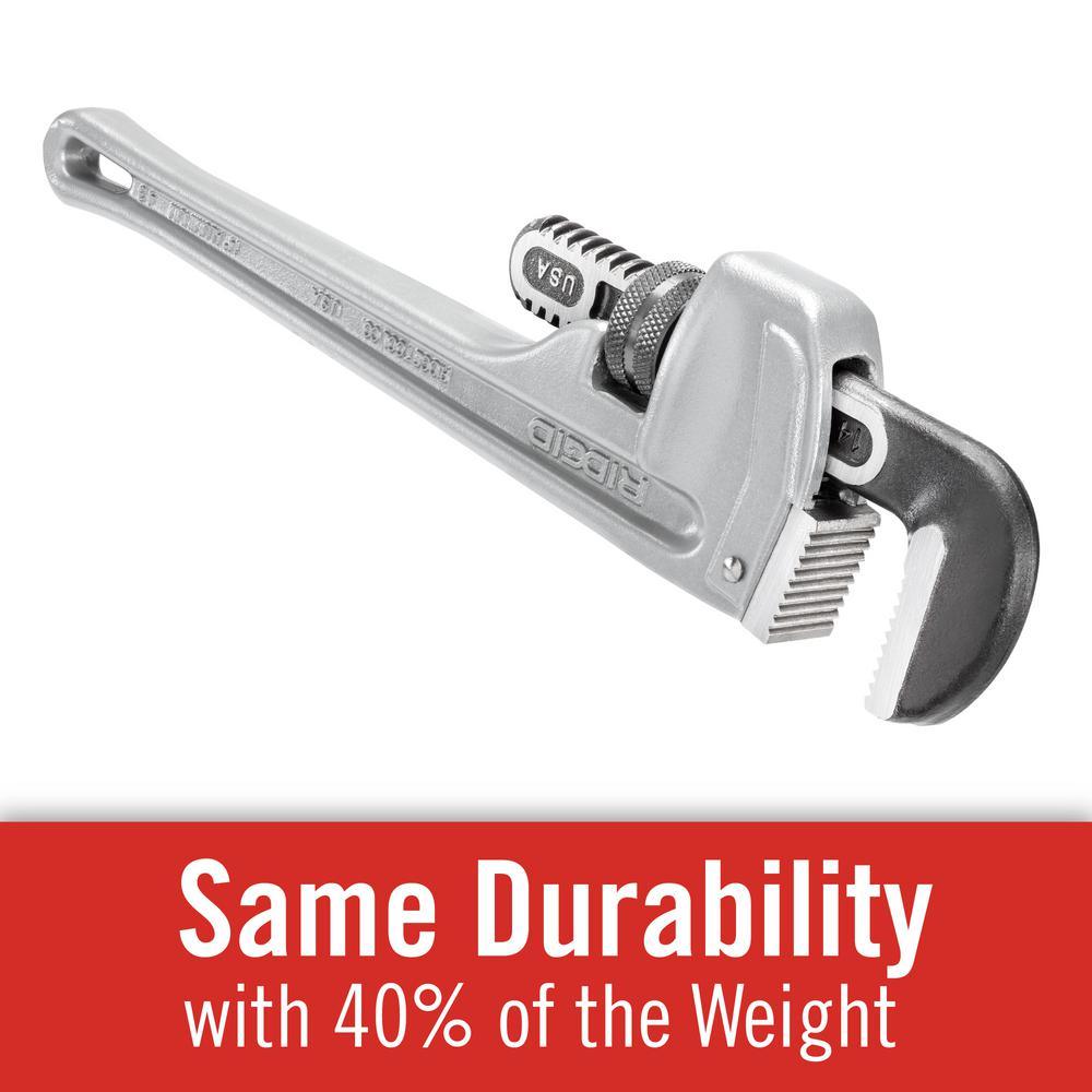 • RIDGID aluminum pipe wrenches are 40% lighter than same-size heavy-duty models and offer the same durability and ease of use