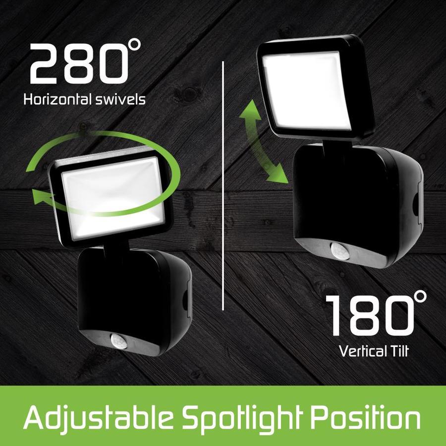 Motion activated with 120 ° motion-detection angle, spotlight illuminates when motion is detected and turns OFF 20 seconds after motion is no longer detected