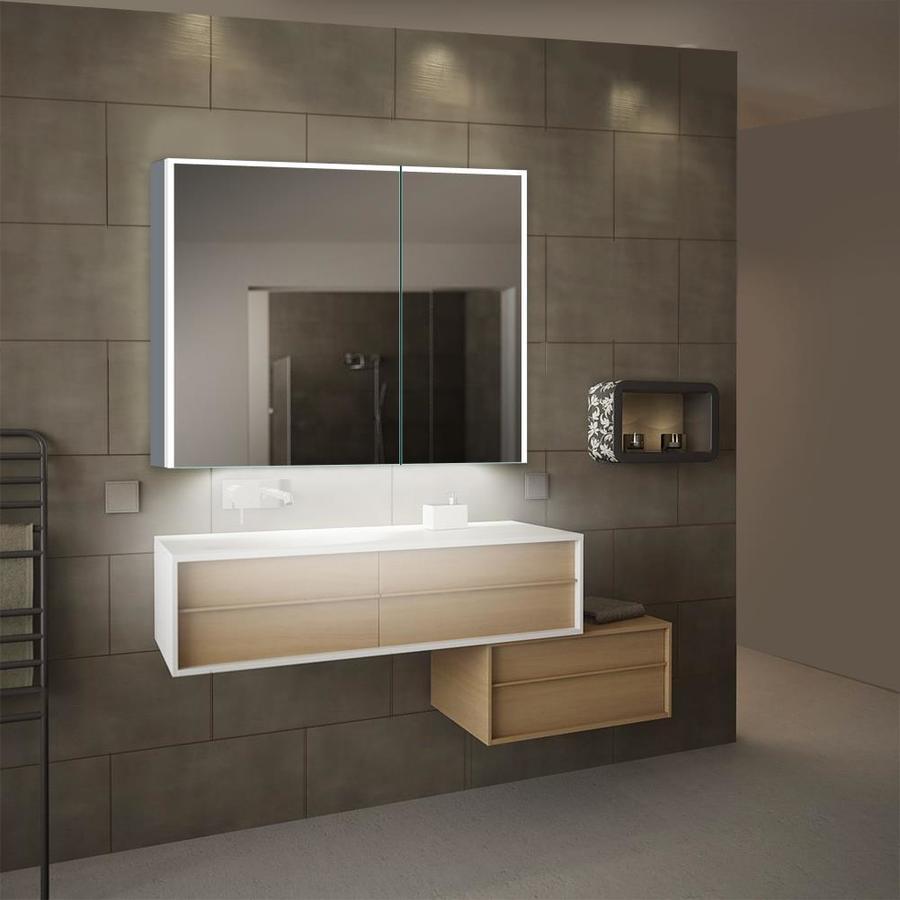 lighted IMPRESSIONS Vienna 31.75-in x 27.75-in Rectangle Surface Mirrored Medicine Cabinet with Outlet and Lights