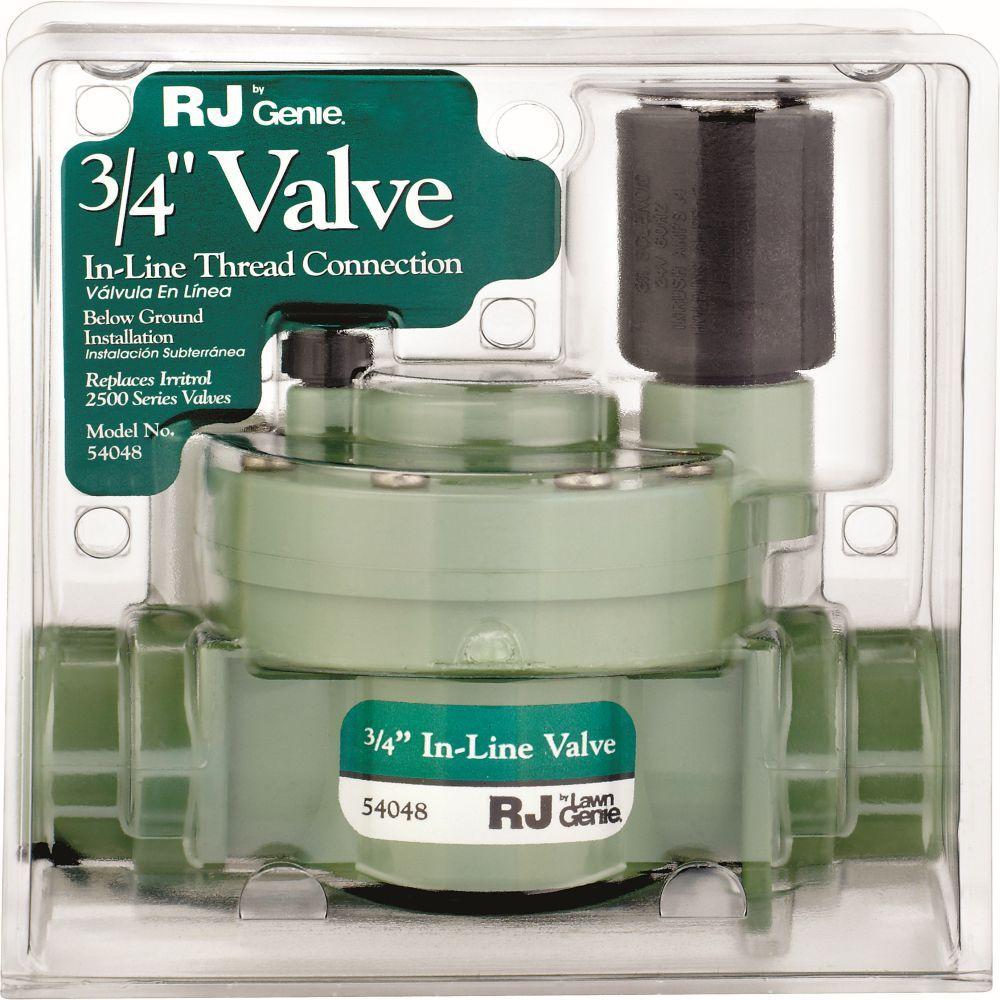 This durable Lawn Genie 150 psi RJ In-Line Valve can be installed in a valve box below ground for seamless landscaping and with a flow-through design, is ideal for potable and dirty water applications. This in-line valve features an external bleed function and a pressure-activated double-beaded diaphragm to strengthen the seal between the body and bonnet. The valve's low-voltage 24 VAC solenoid with captured plunger and a stainless-steel metering pin are built for durability and longevity.