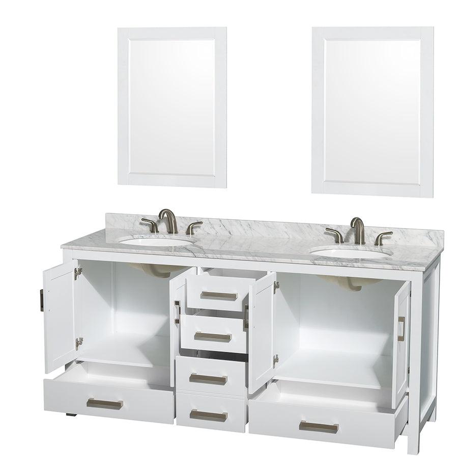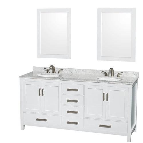 Wyndham Collection Sheffield 72-in White Double Sink Bathroom Vanity with White Carrara Marble Natural Marble Top (Mirror Included)